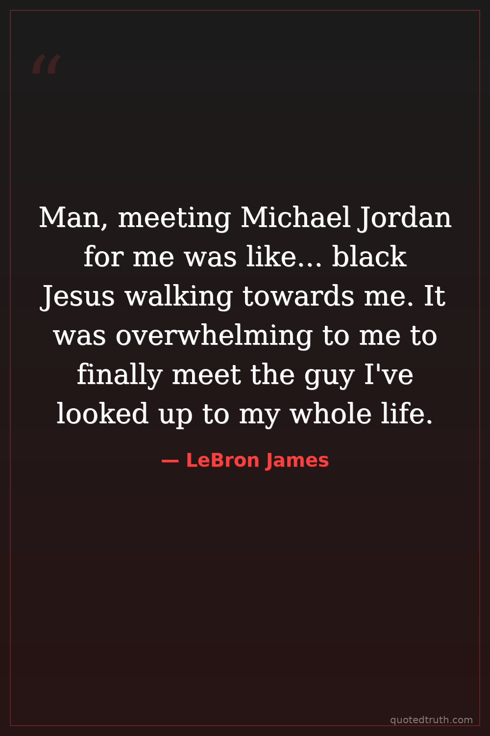 Man, meeting Michael Jordan for me was like... black Jesus walking towards me. It was overwhelming to me to finally meet the guy I've looked up to my whole life.