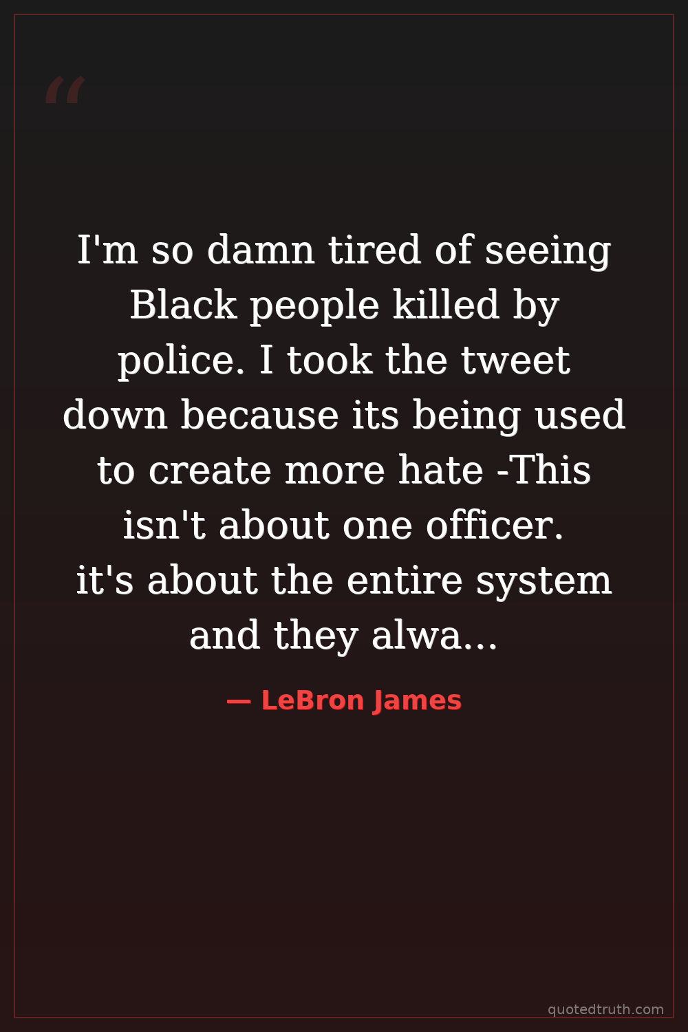 I'm so damn tired of seeing Black people killed by police. I took the tweet down because its being used to create more hate -This isn't about one officer. it's about the entire system and they always use our words to create more racism. I am so desperate for more ACCOUNTABILITY.