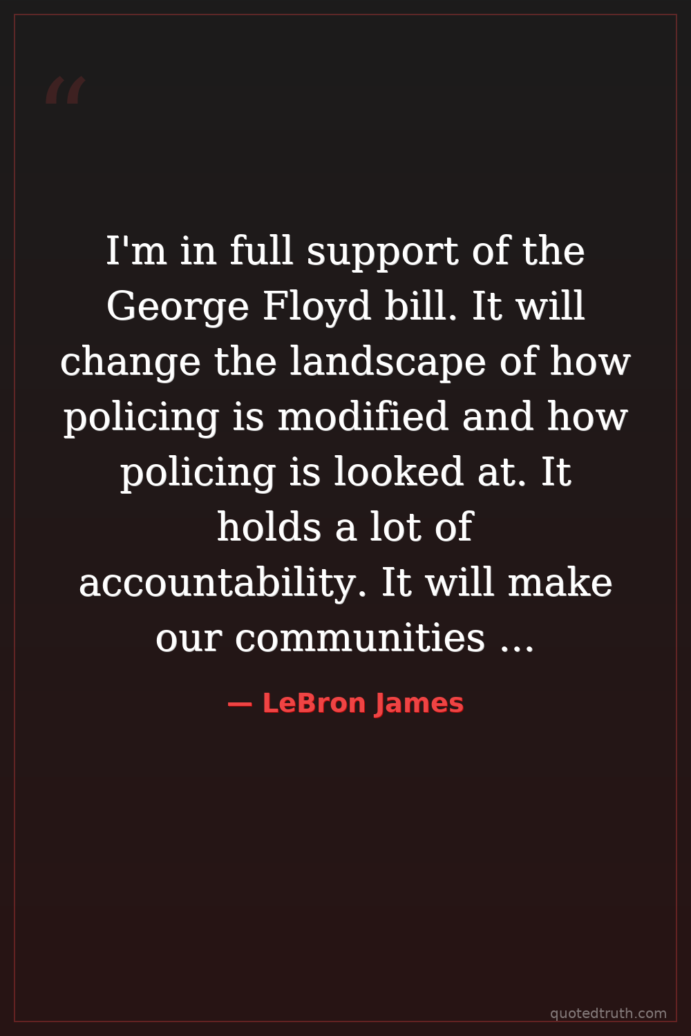 I'm in full support of the George Floyd bill. It will change the landscape of how policing is modified and how policing is looked at. It holds a lot of accountability. It will make our communities and our great nation a better place.