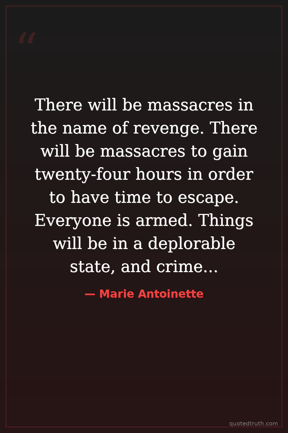 There will be massacres in the name of revenge. There will be massacres to gain twenty-four hours in order to have time to escape. Everyone is armed. Things will be in a deplorable state, and crime and murder will enter into people's houses and no citizen will be assured of surviving from one day to the next.