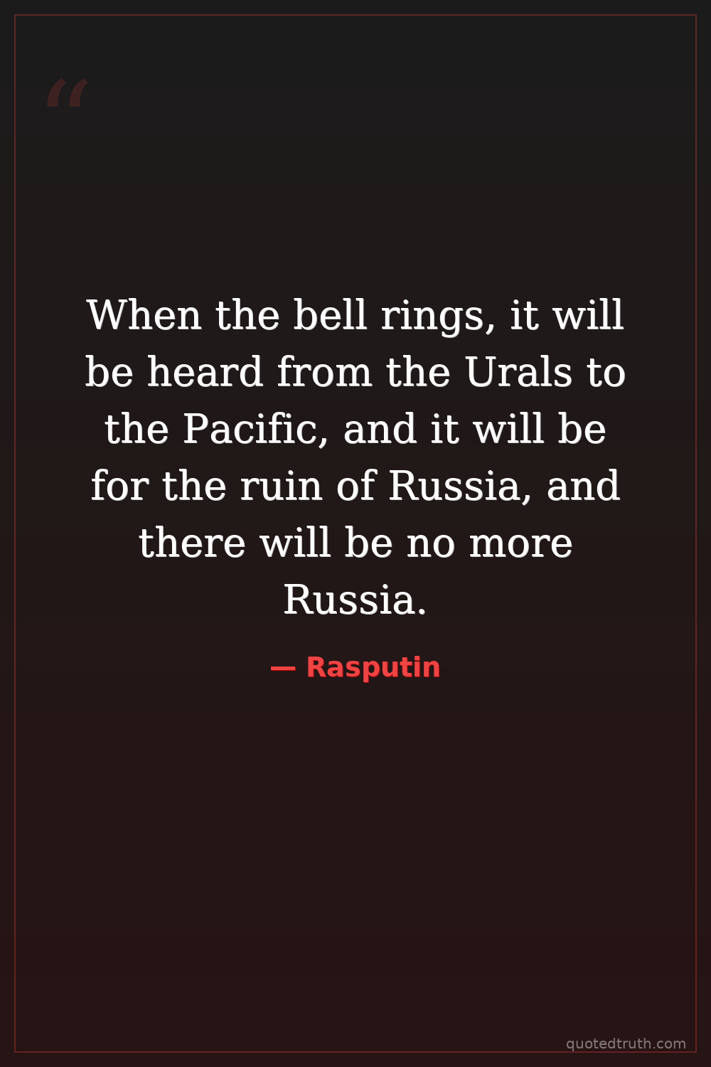 When the bell rings, it will be heard from the Urals to the Pacific, and it will be for the ruin of Russia, and there will be no more Russia.