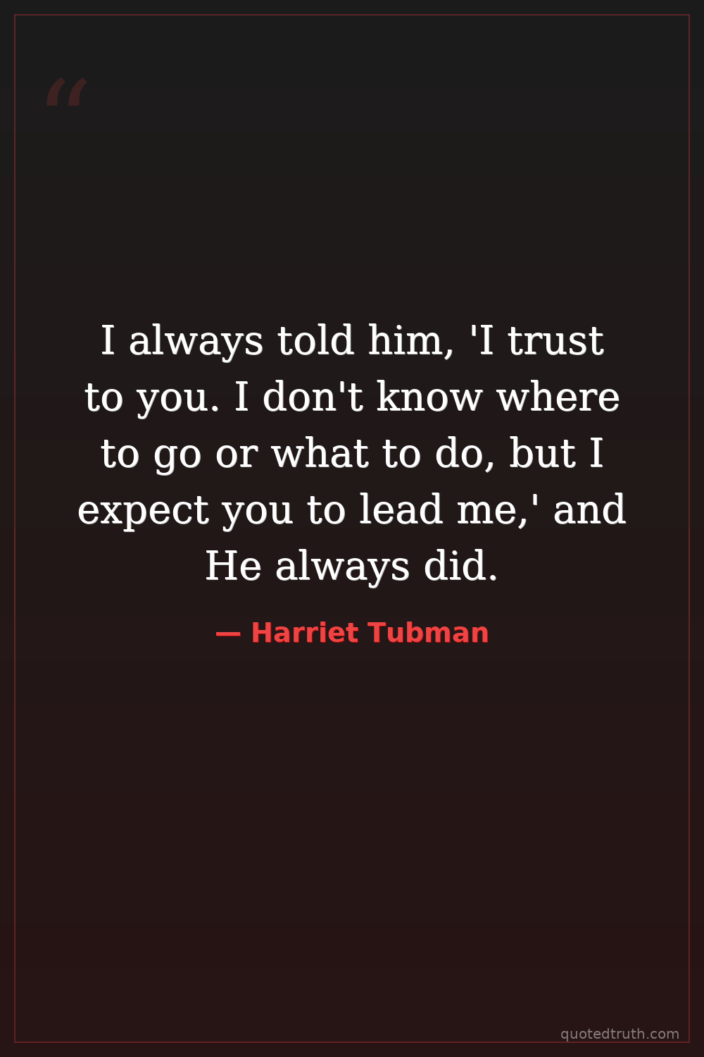 I always told him, 'I trust to you. I don't know where to go or what to do, but I expect you to lead me,' and He always did.
