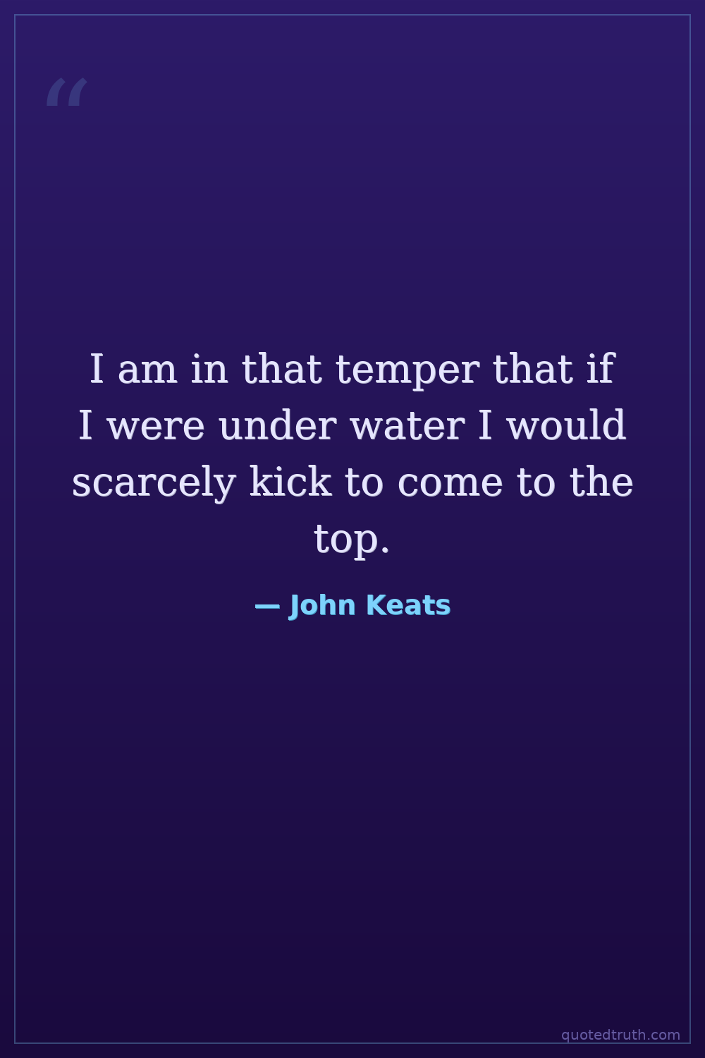 I am in that temper that if I were under water I would scarcely kick to come to the top.