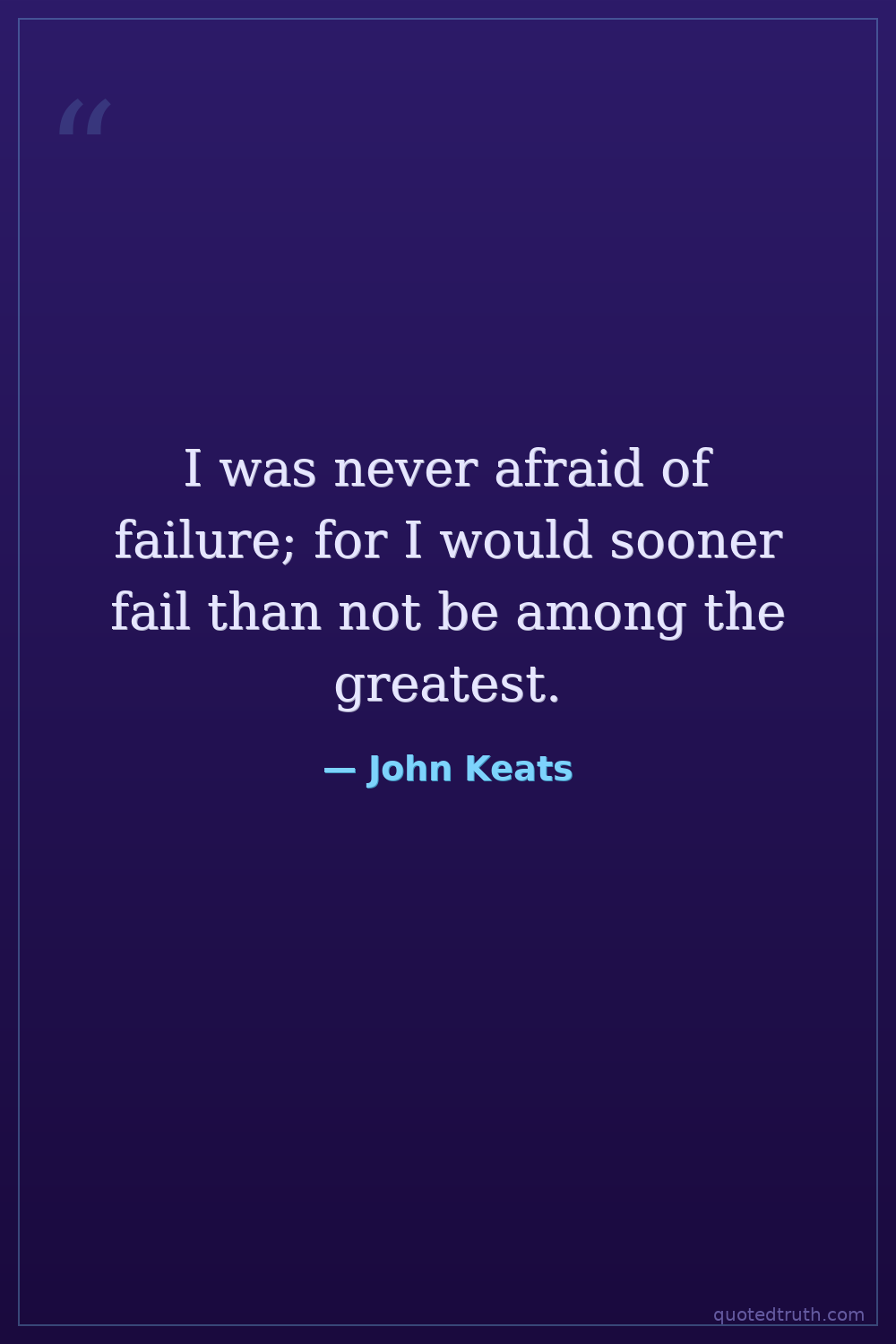 I was never afraid of failure; for I would sooner fail than not be among the greatest.