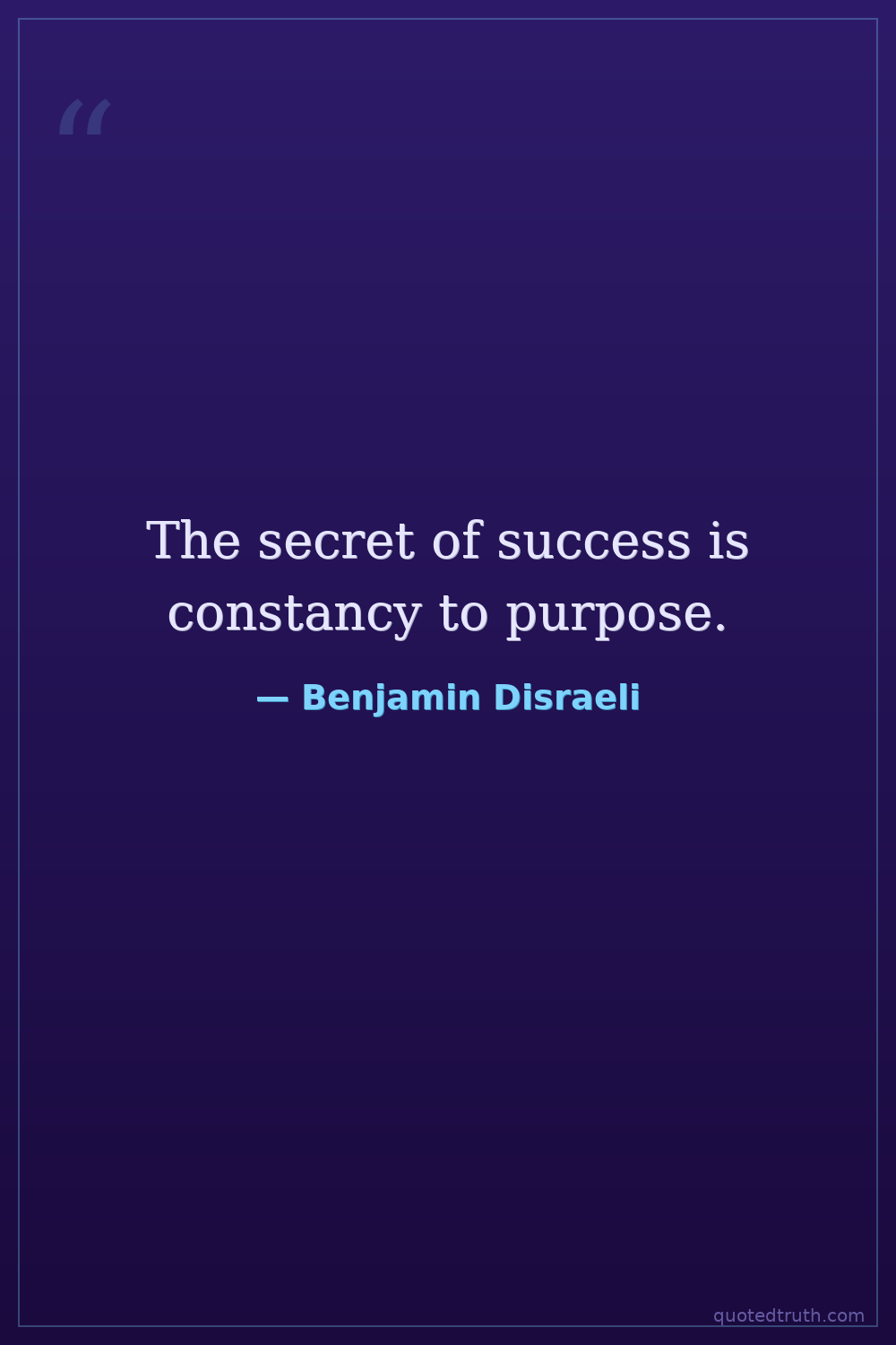 The secret of success is constancy to purpose.