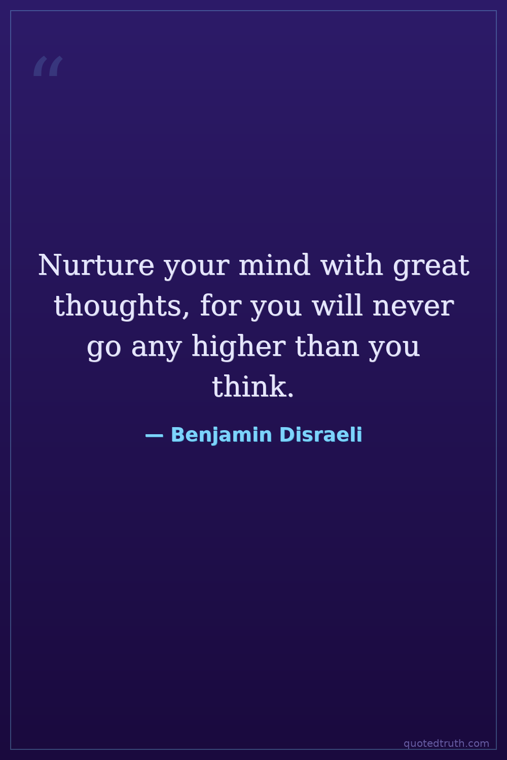 Nurture your mind with great thoughts, for you will never go any higher than you think.