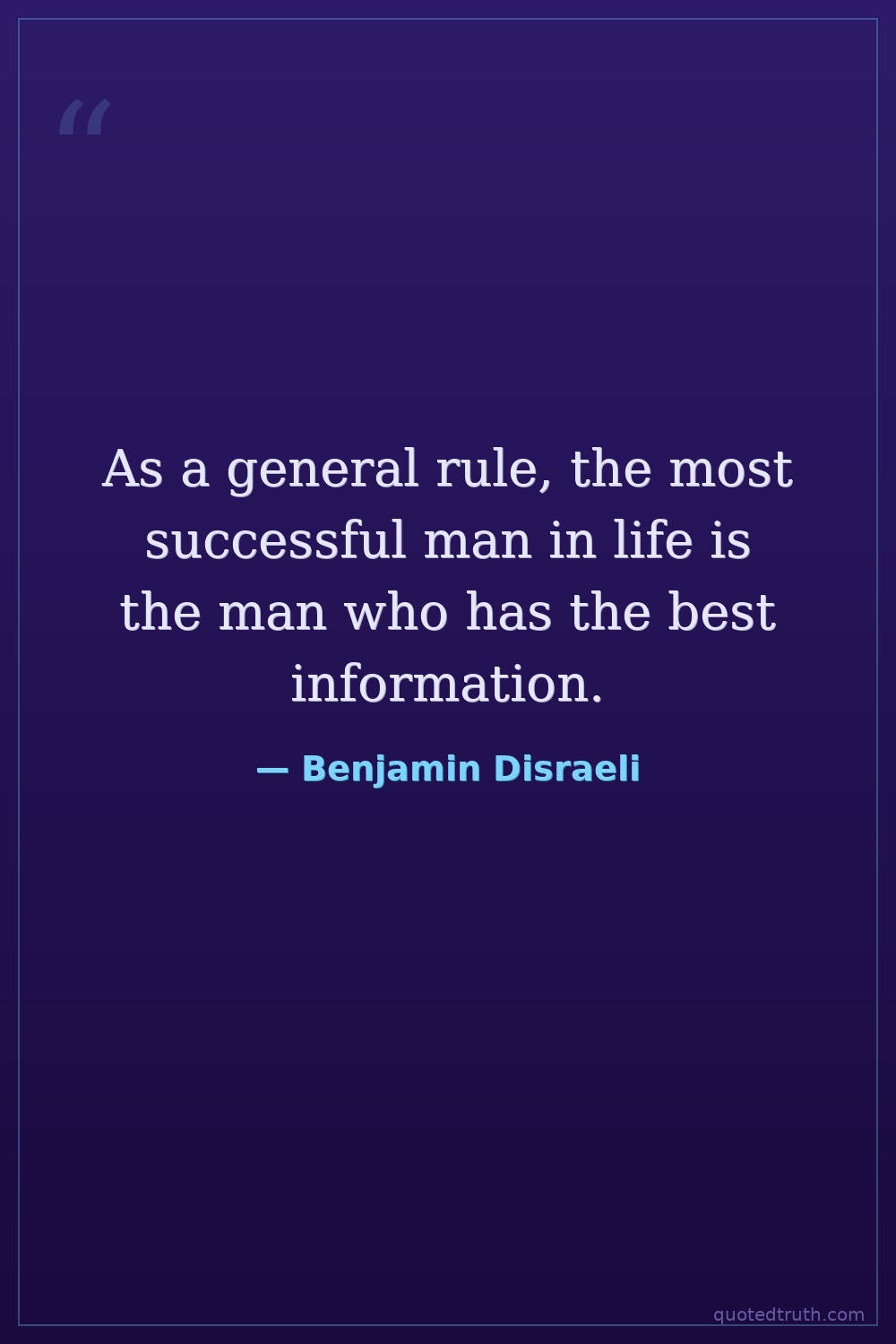 As a general rule, the most successful man in life is the man who has the best information.