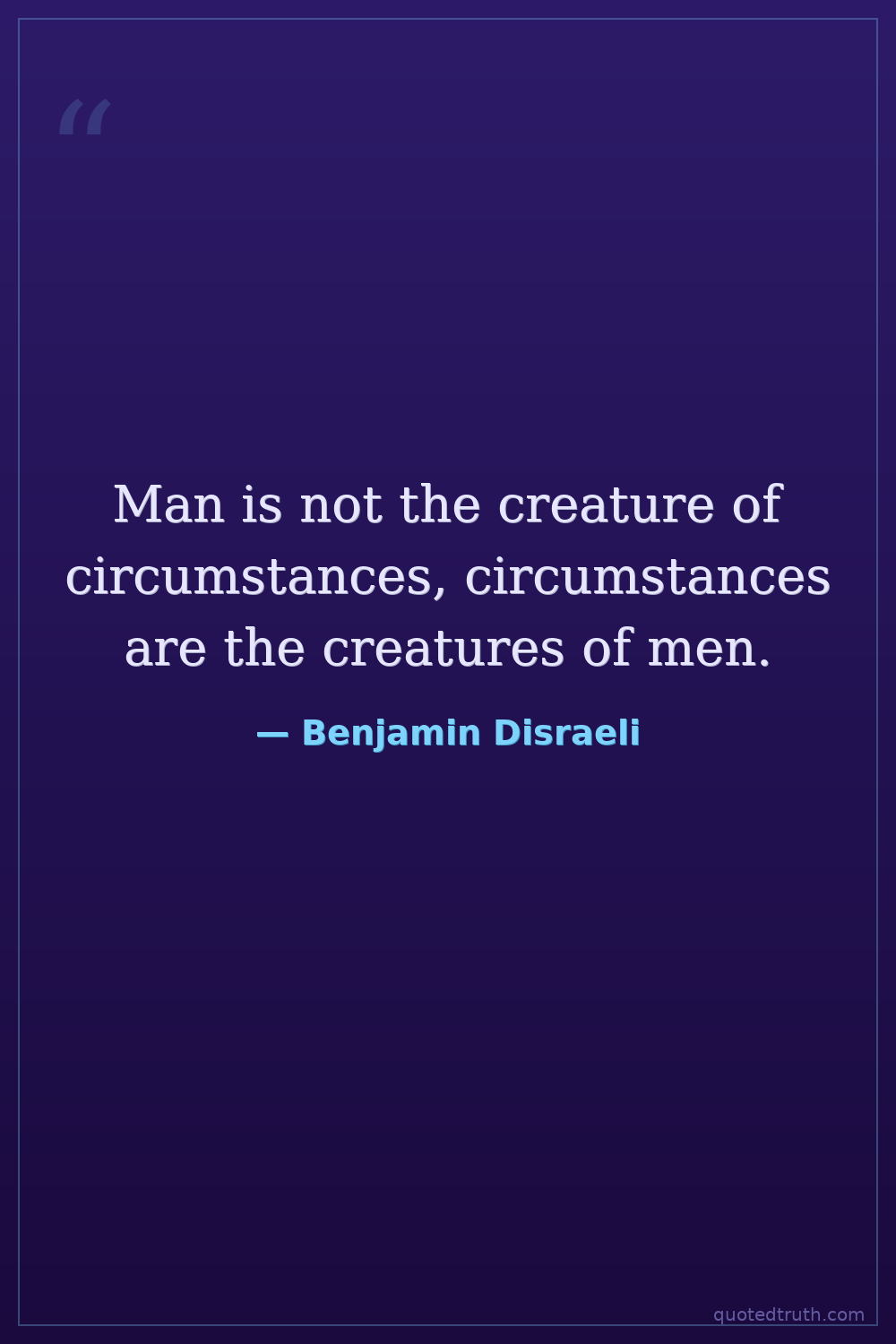 Man is not the creature of circumstances, circumstances are the creatures of men.