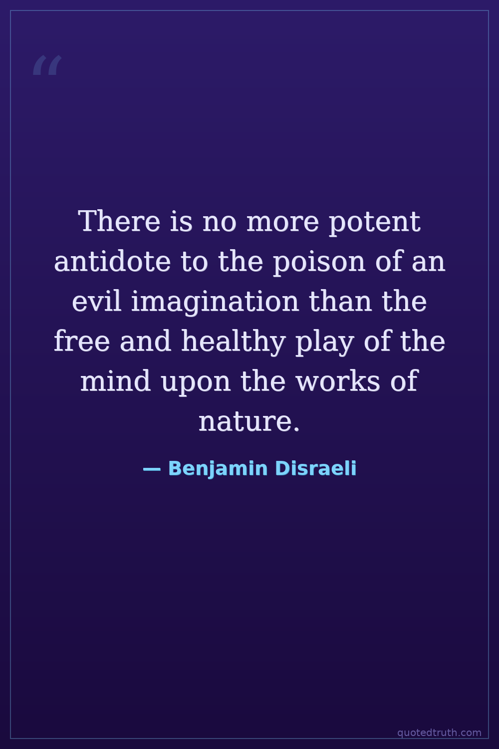 There is no more potent antidote to the poison of an evil imagination than the free and healthy play of the mind upon the works of nature.