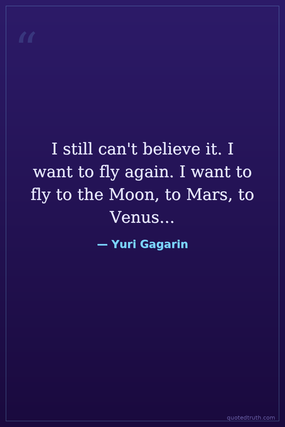 I still can't believe it. I want to fly again. I want to fly to the Moon, to Mars, to Venus...