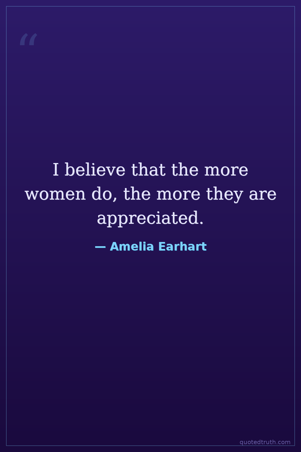I believe that the more women do, the more they are appreciated.