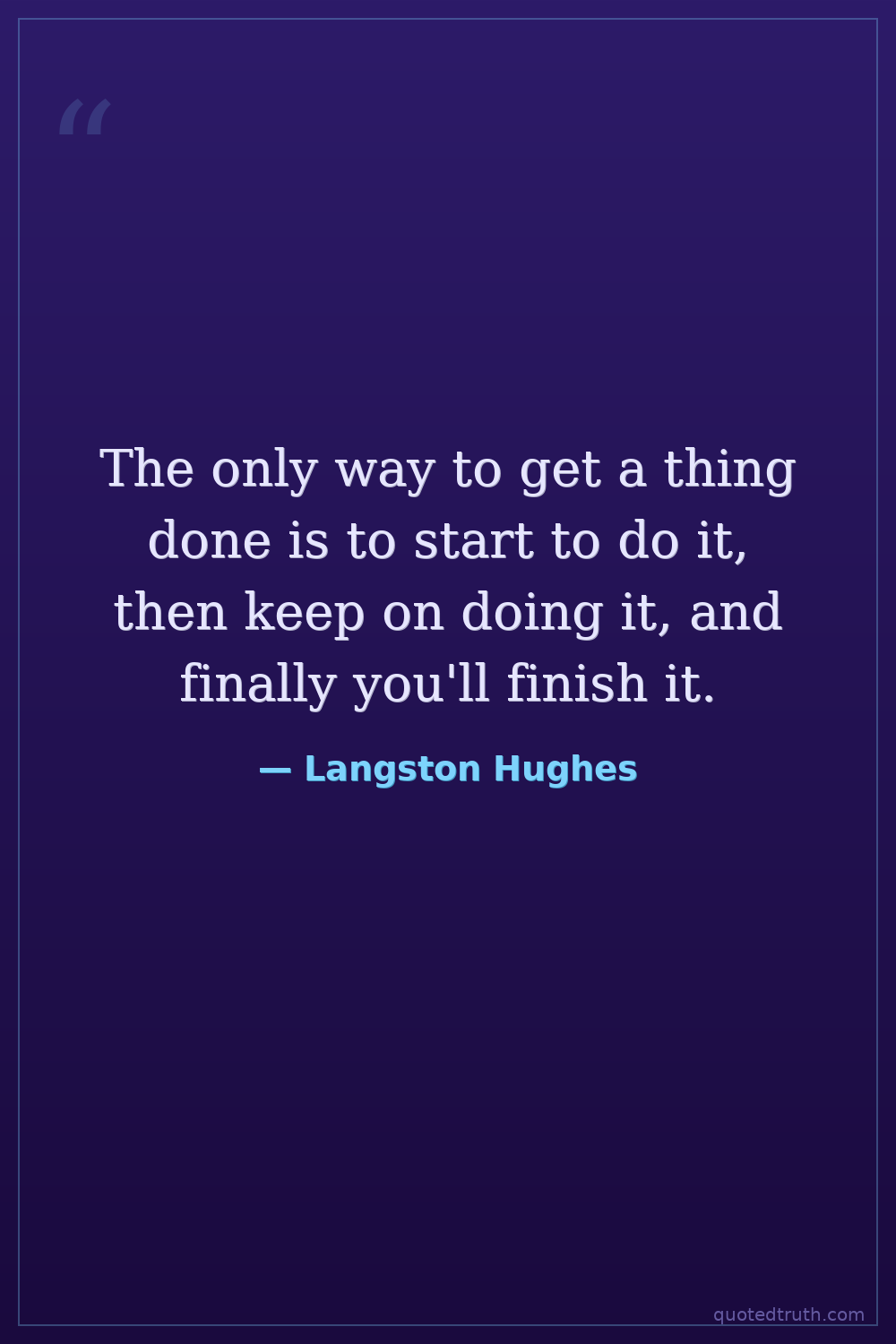 The only way to get a thing done is to start to do it, then keep on doing it, and finally you'll finish it.