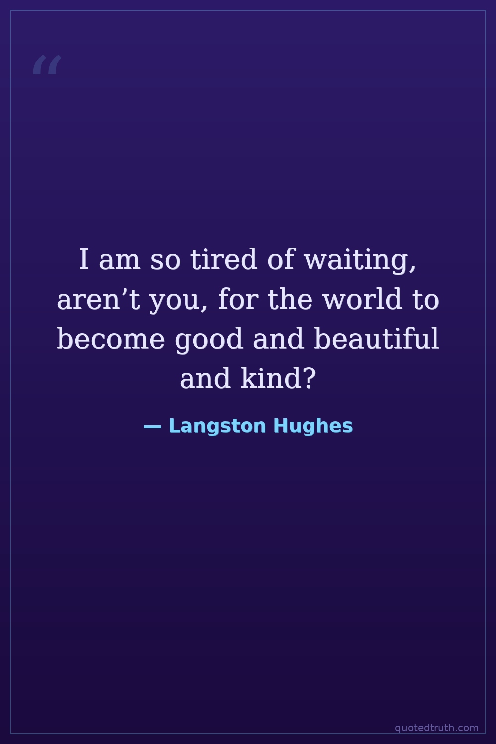 I am so tired of waiting, aren’t you, for the world to become good and beautiful and kind?