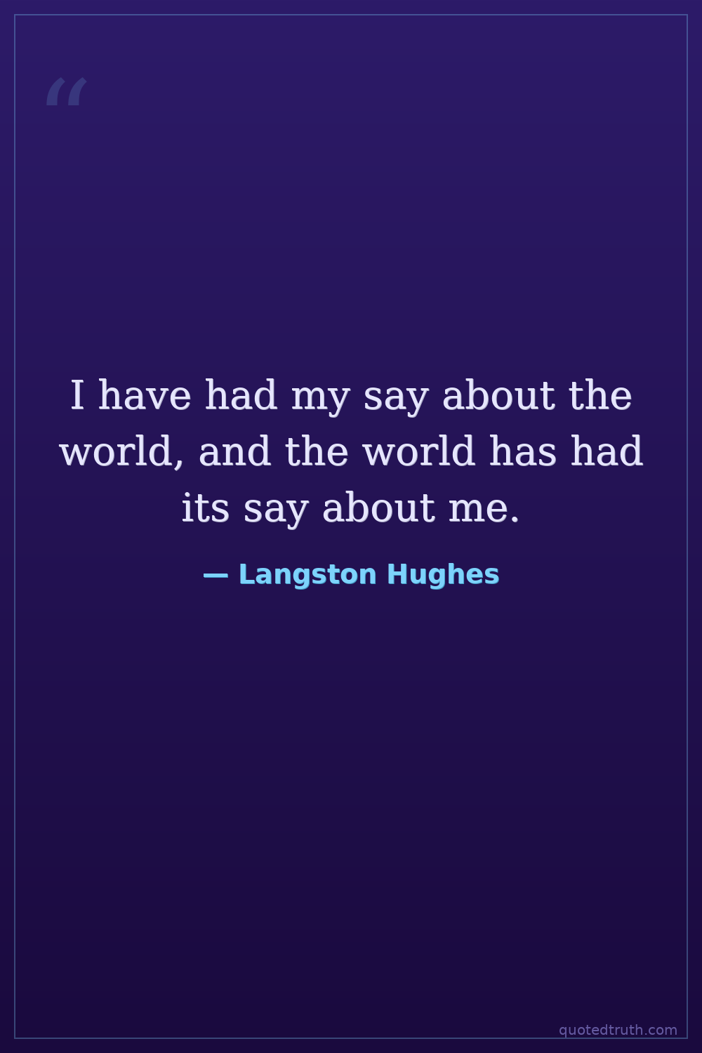 I have had my say about the world, and the world has had its say about me.