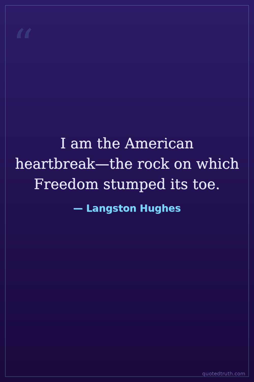 I am the American heartbreak—the rock on which Freedom stumped its toe.