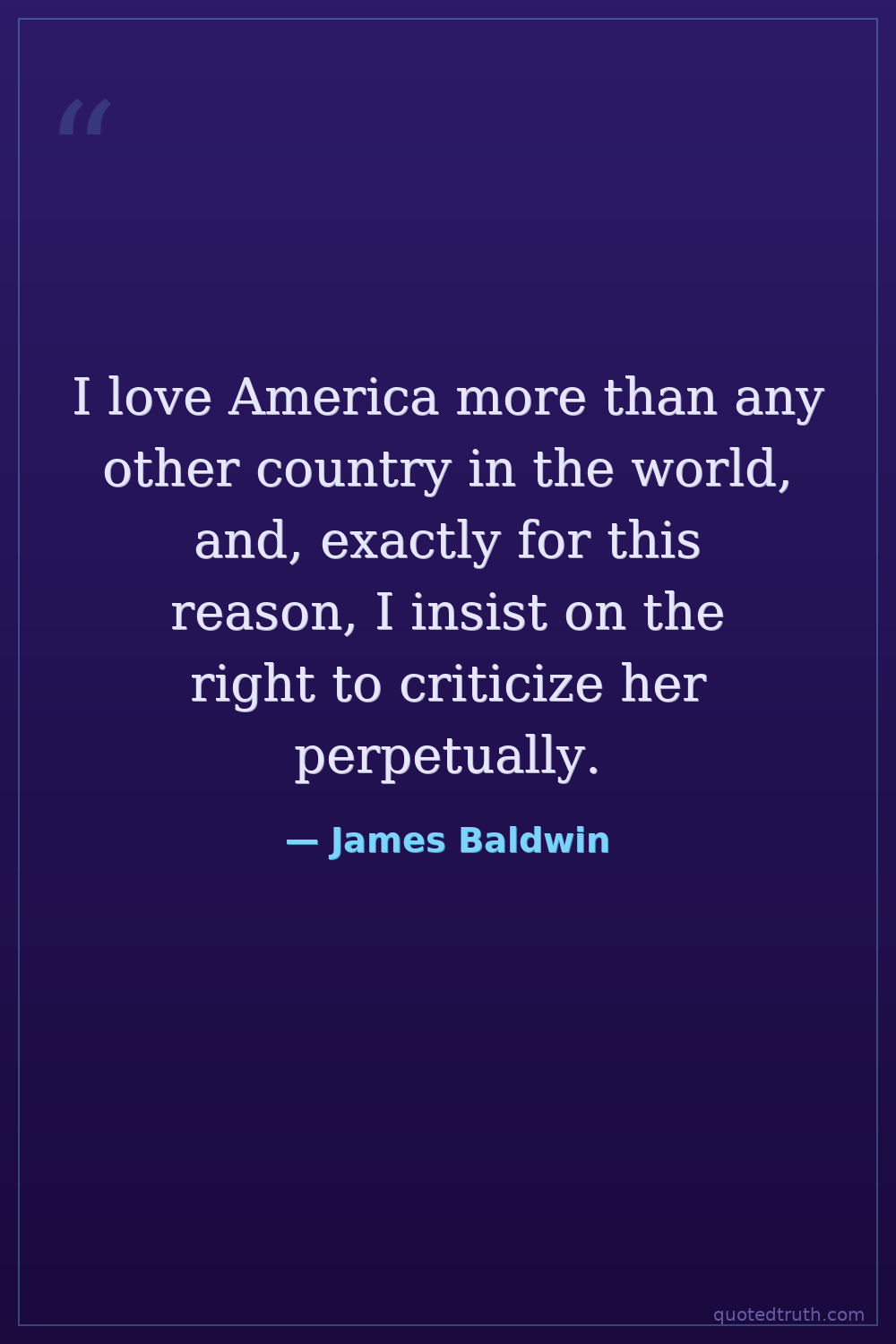 I love America more than any other country in the world, and, exactly for this reason, I insist on the right to criticize her perpetually.