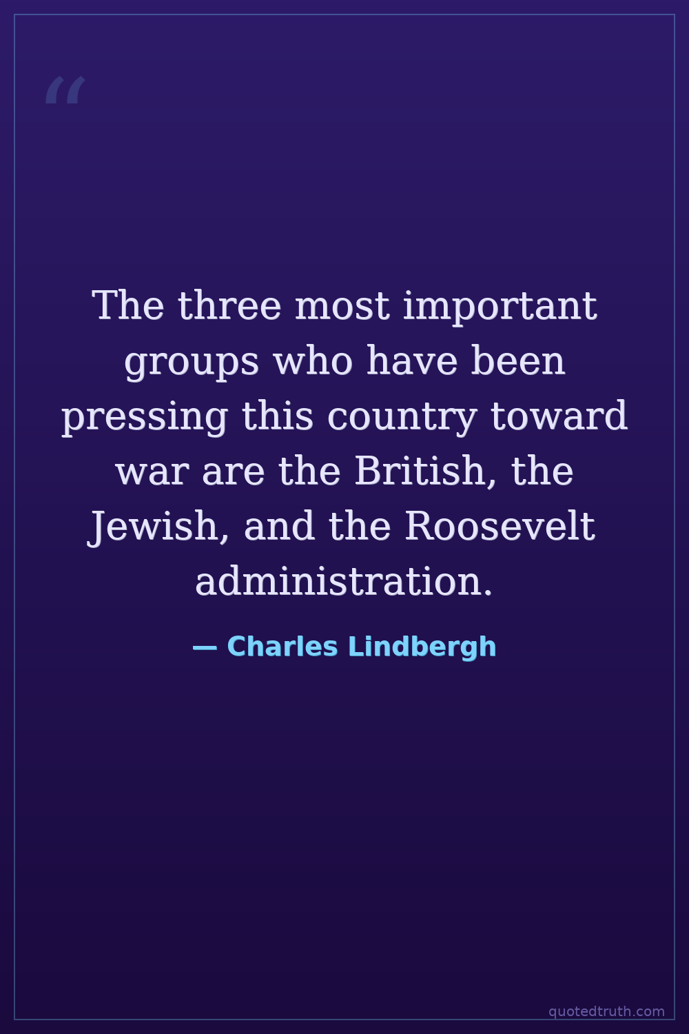 The three most important groups who have been pressing this country toward war are the British, the Jewish, and the Roosevelt administration.