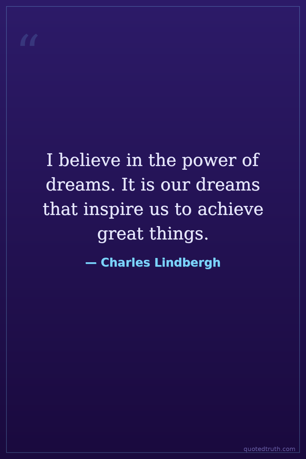 I believe in the power of dreams. It is our dreams that inspire us to achieve great things.