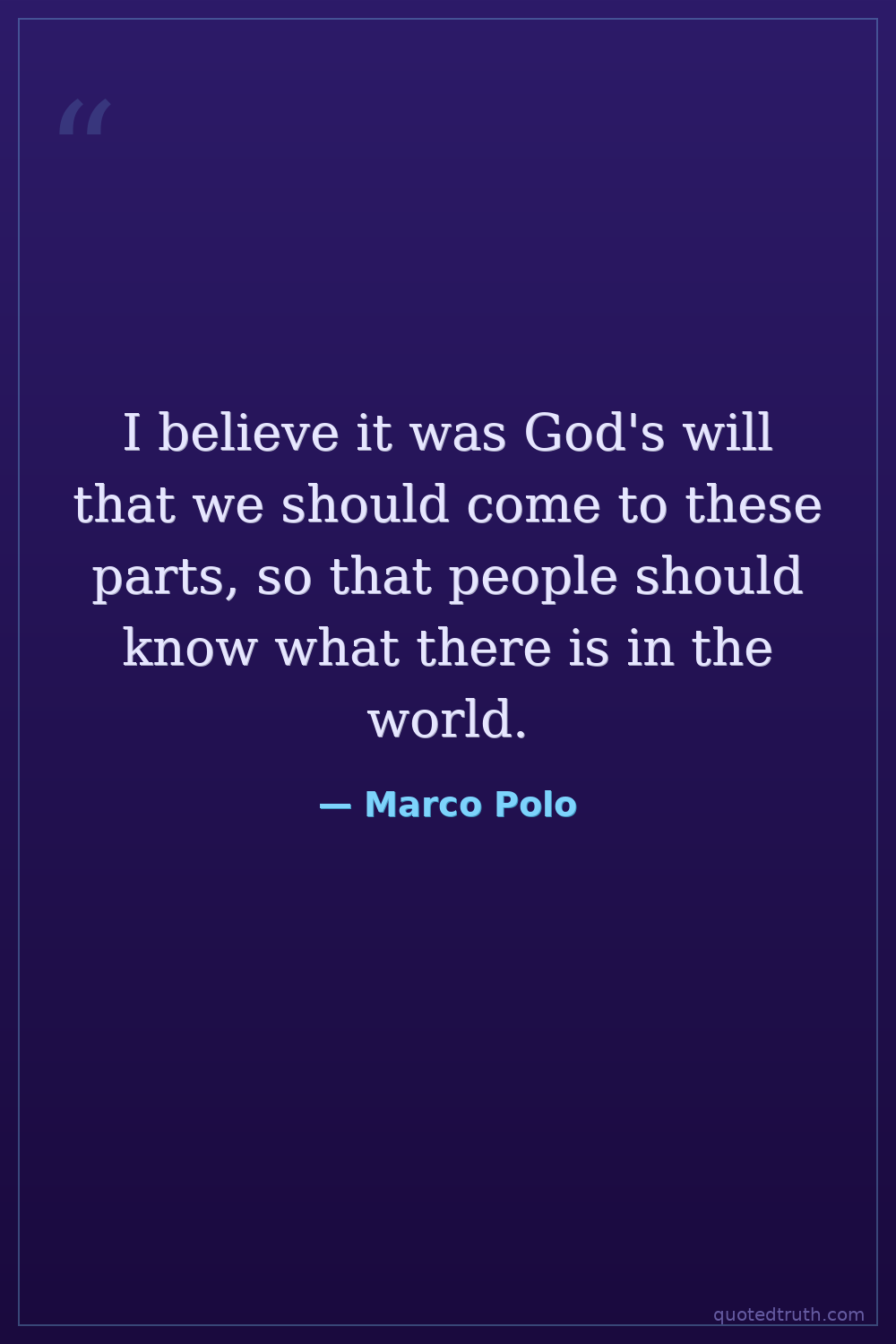 I believe it was God's will that we should come to these parts, so that people should know what there is in the world.