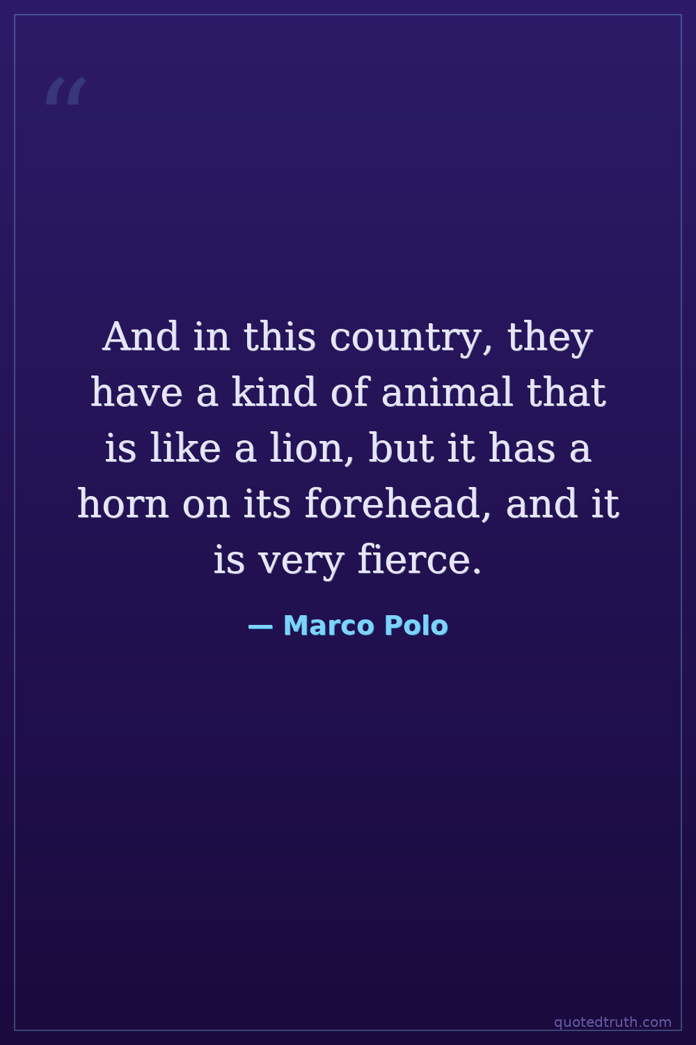 And in this country, they have a kind of animal that is like a lion, but it has a horn on its forehead, and it is very fierce.