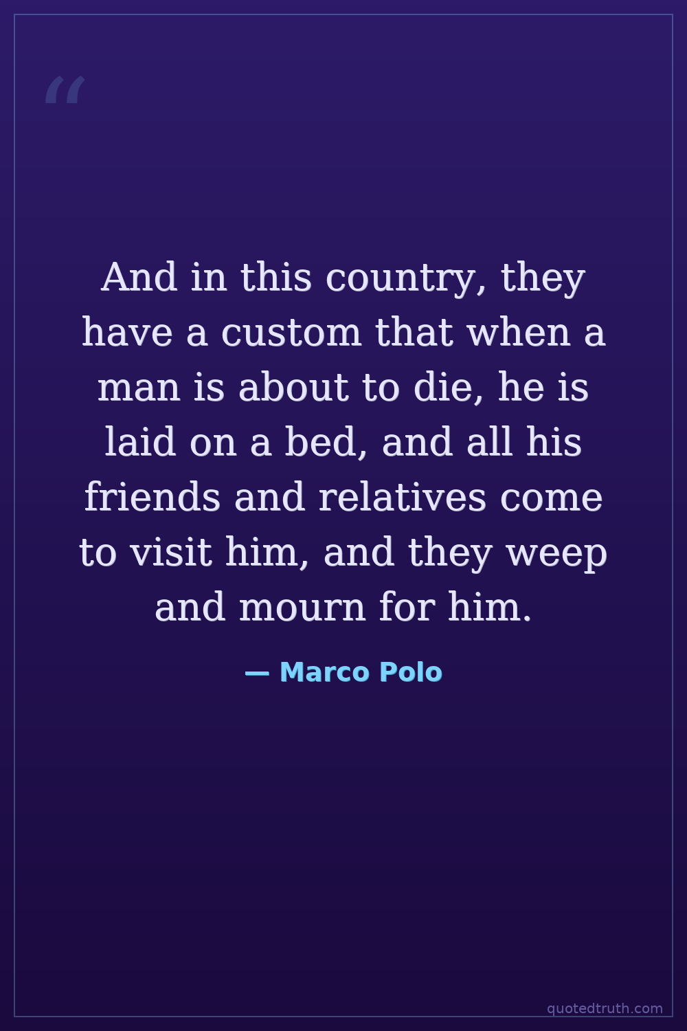 And in this country, they have a custom that when a man is about to die, he is laid on a bed, and all his friends and relatives come to visit him, and they weep and mourn for him.