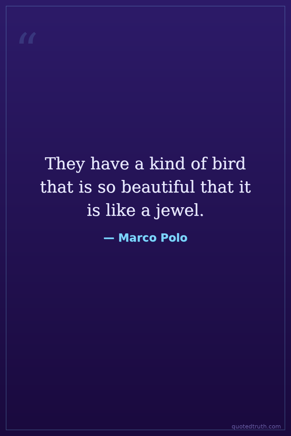 From 'The Travels of Marco Polo', likely referring to a peacock or similar exotic bird