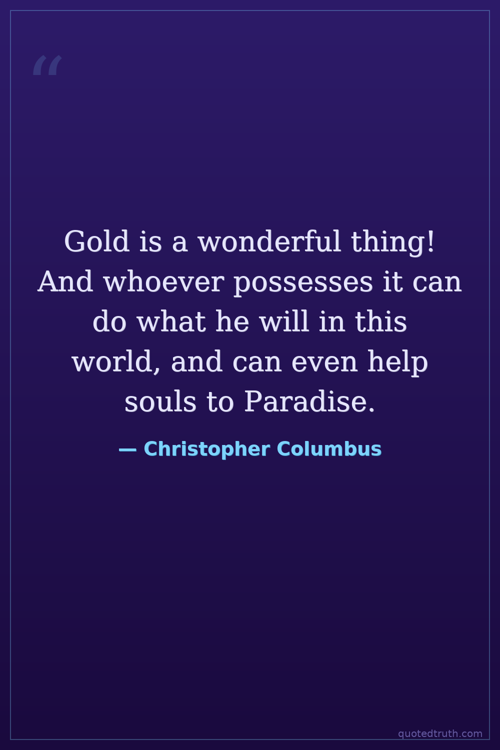 Gold is a wonderful thing! And whoever possesses it can do what he will in this world, and can even help souls to Paradise.