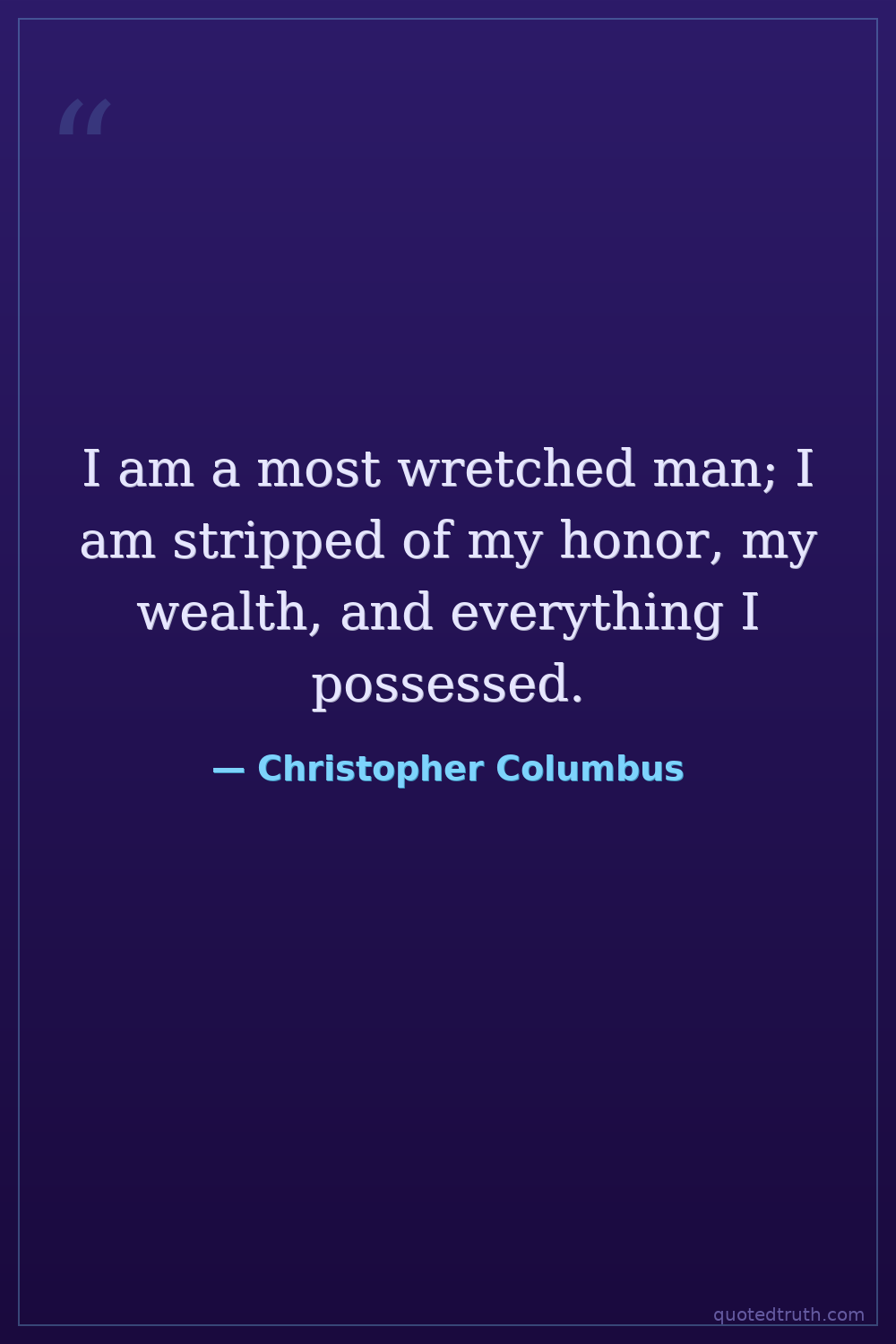 I am a most wretched man; I am stripped of my honor, my wealth, and everything I possessed.