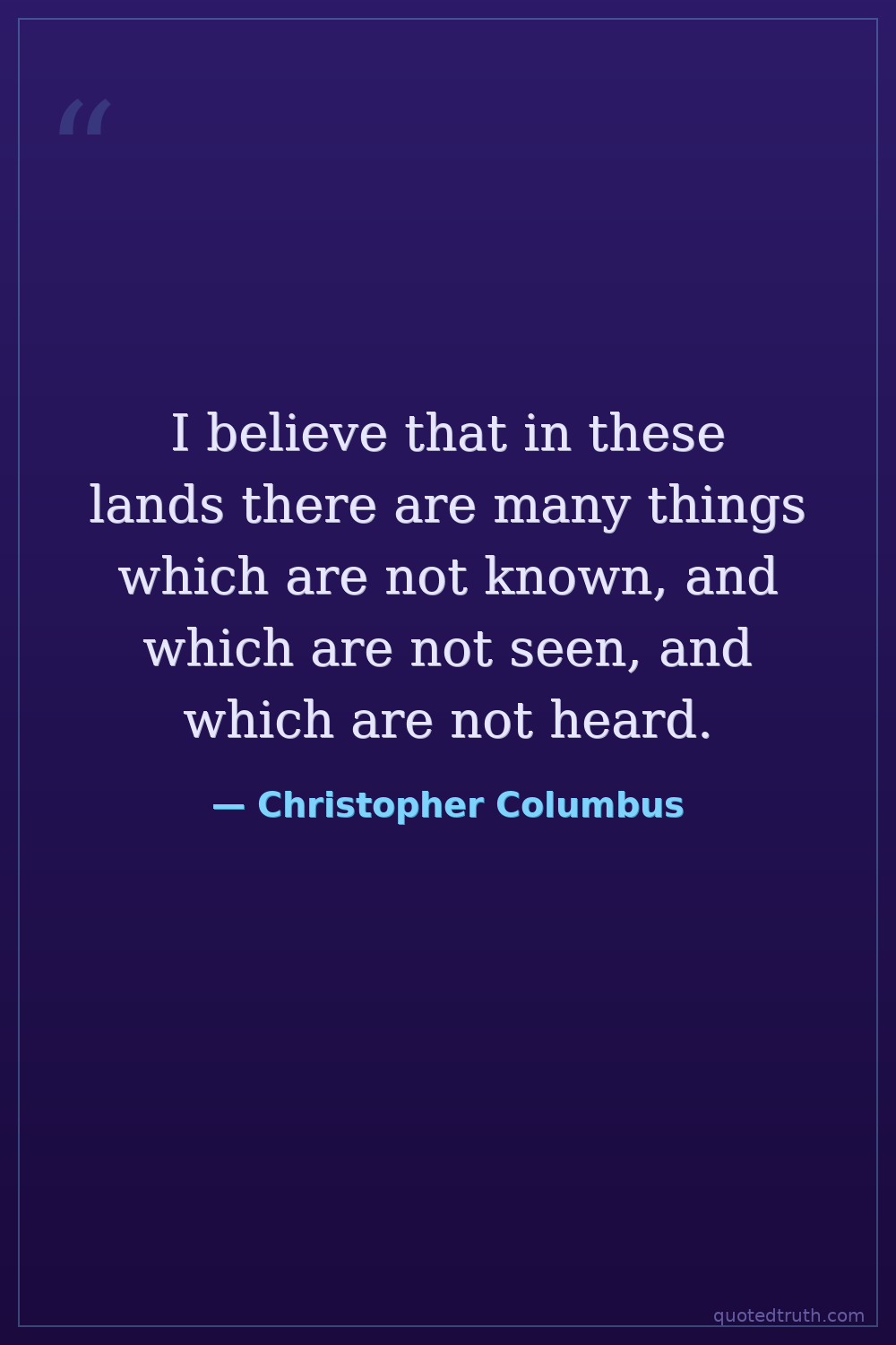 I believe that in these lands there are many things which are not known, and which are not seen, and which are not heard.