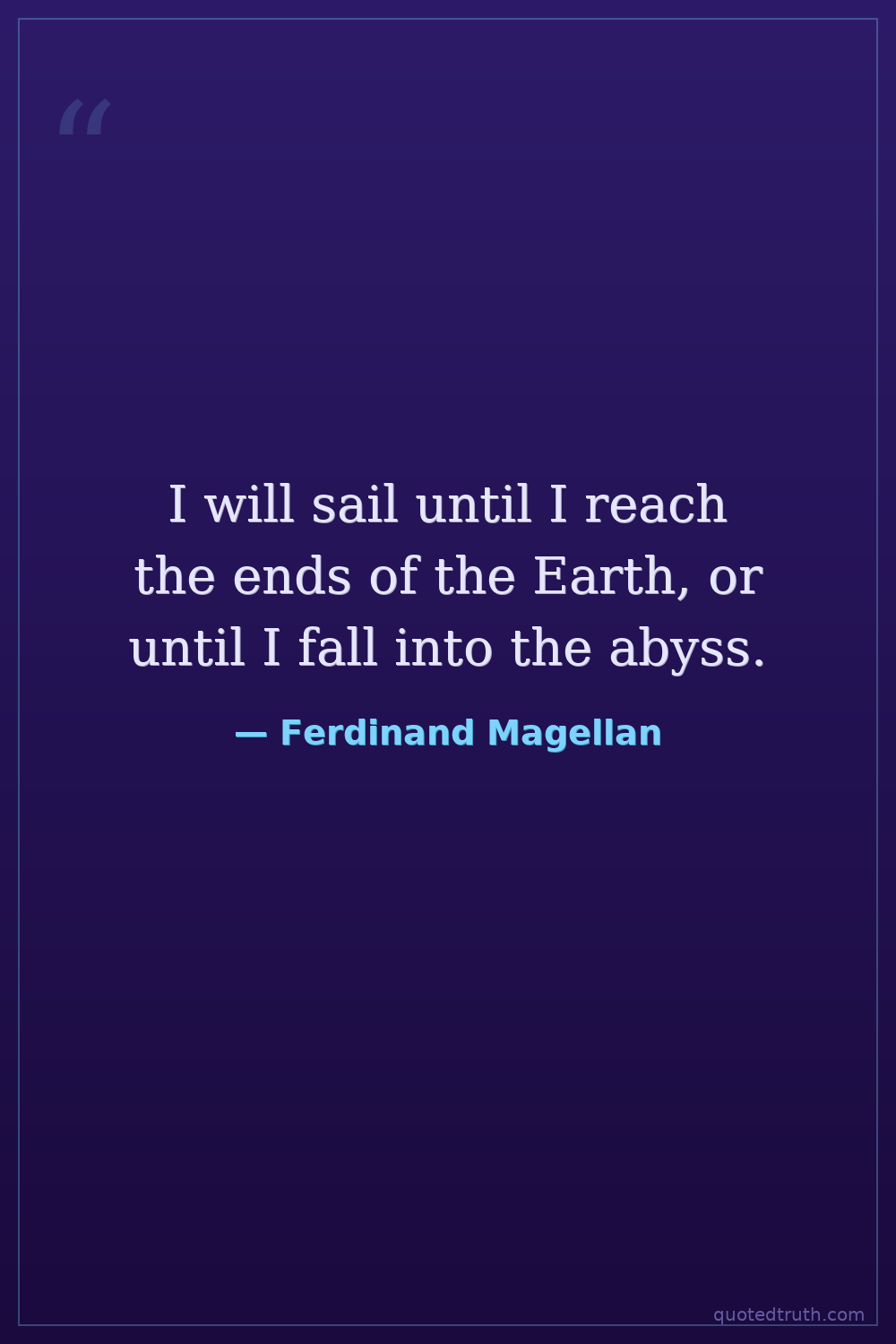 I will sail until I reach the ends of the Earth, or until I fall into the abyss.