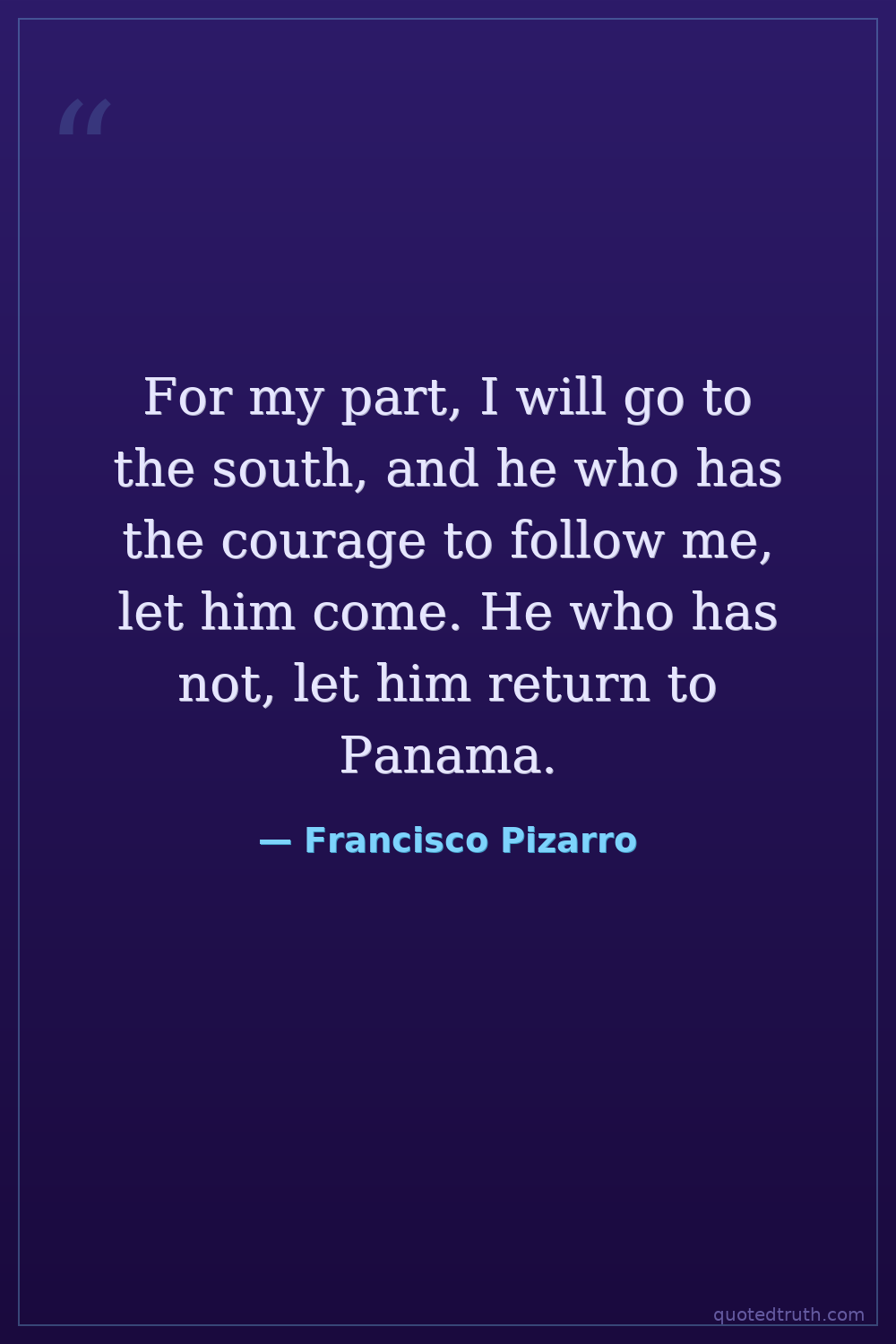 For my part, I will go to the south, and he who has the courage to follow me, let him come. He who has not, let him return to Panama.
