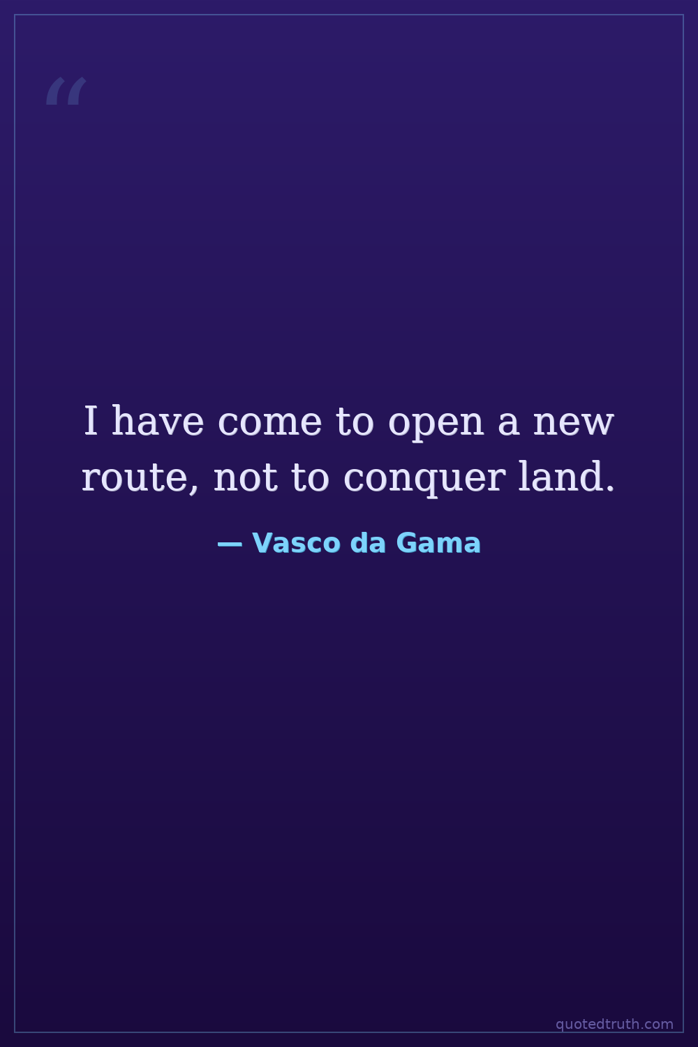 I have come to open a new route, not to conquer land.