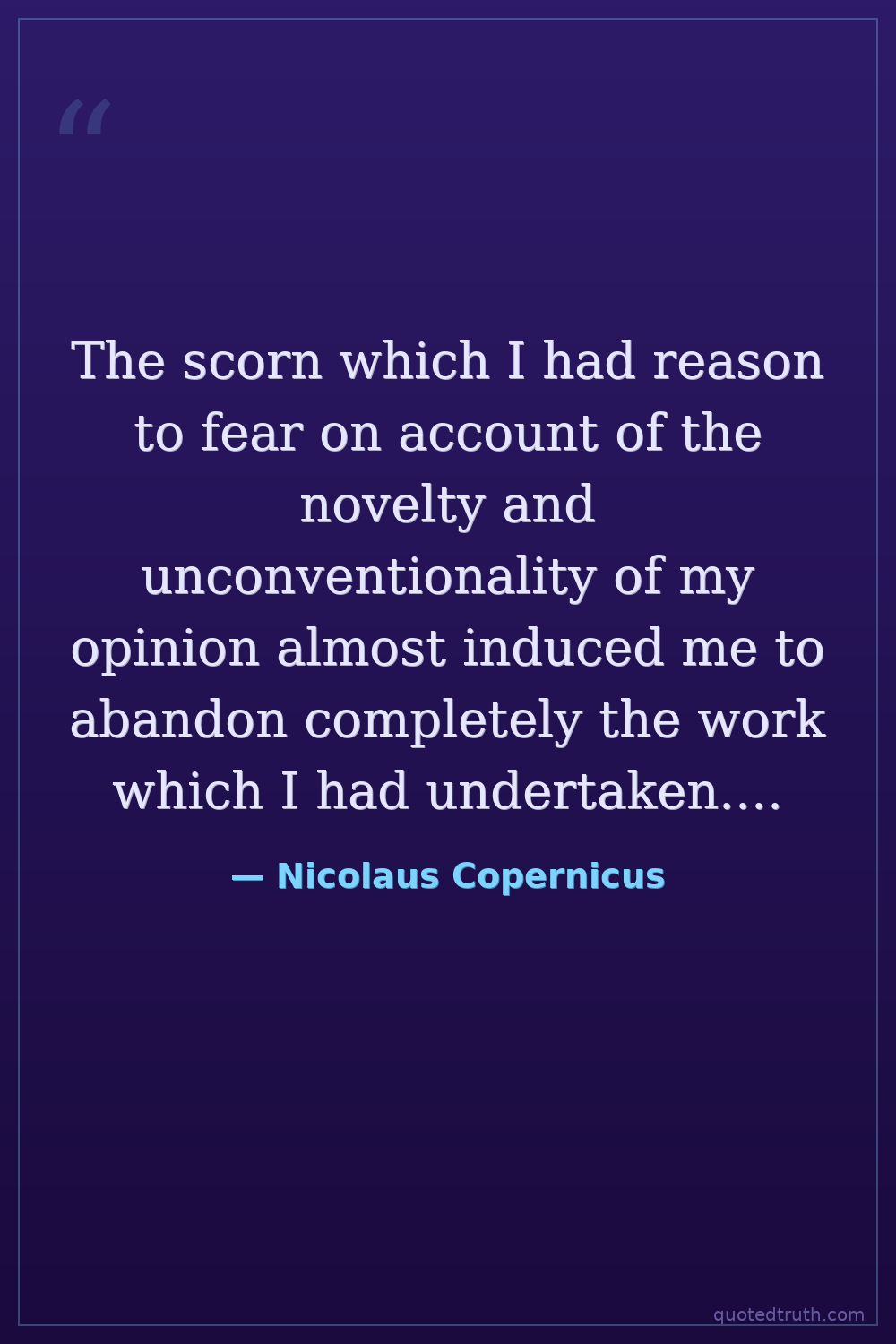 The scorn which I had reason to fear on account of the novelty and unconventionality of my opinion almost induced me to abandon completely the work which I had undertaken....