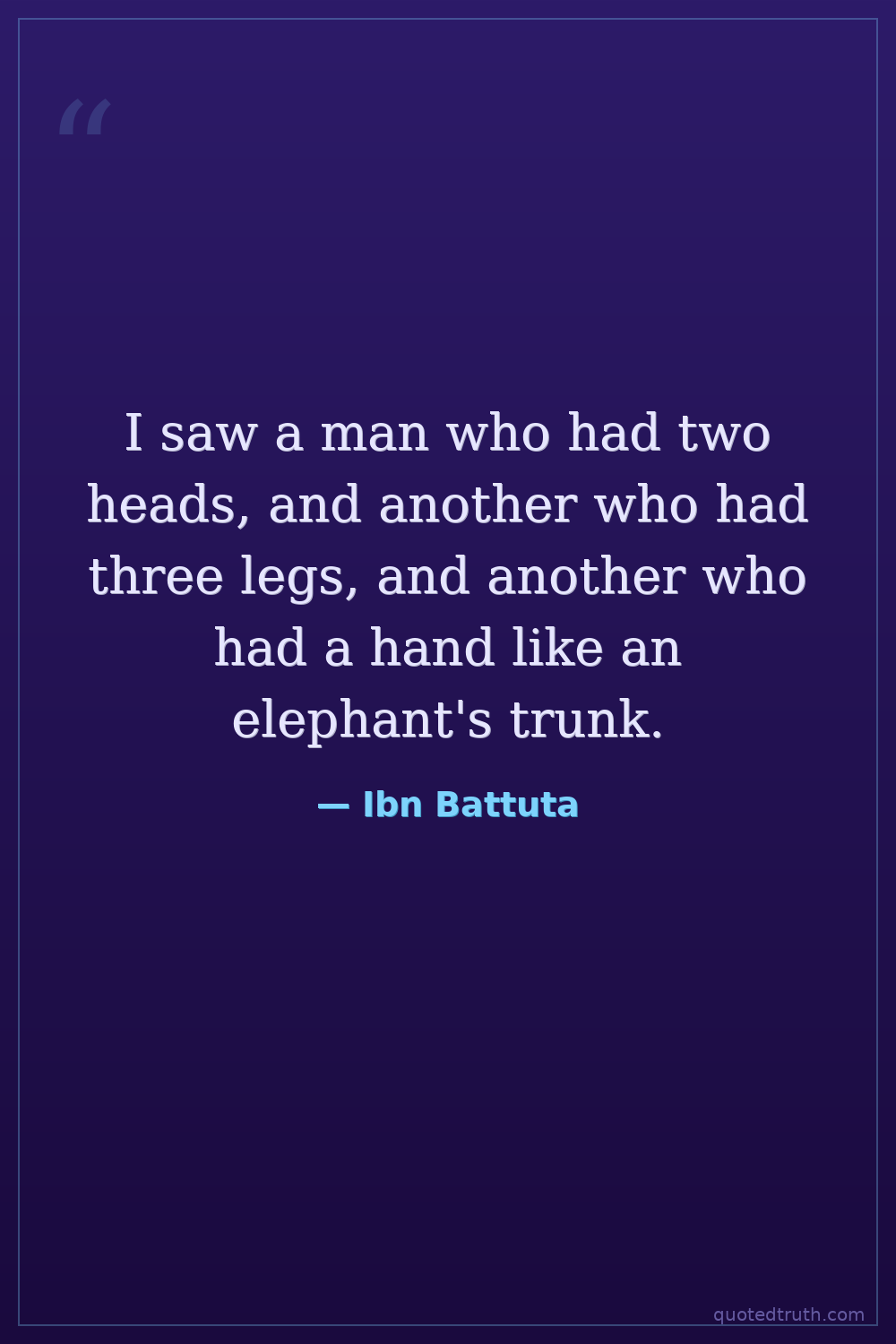 I saw a man who had two heads, and another who had three legs, and another who had a hand like an elephant's trunk.