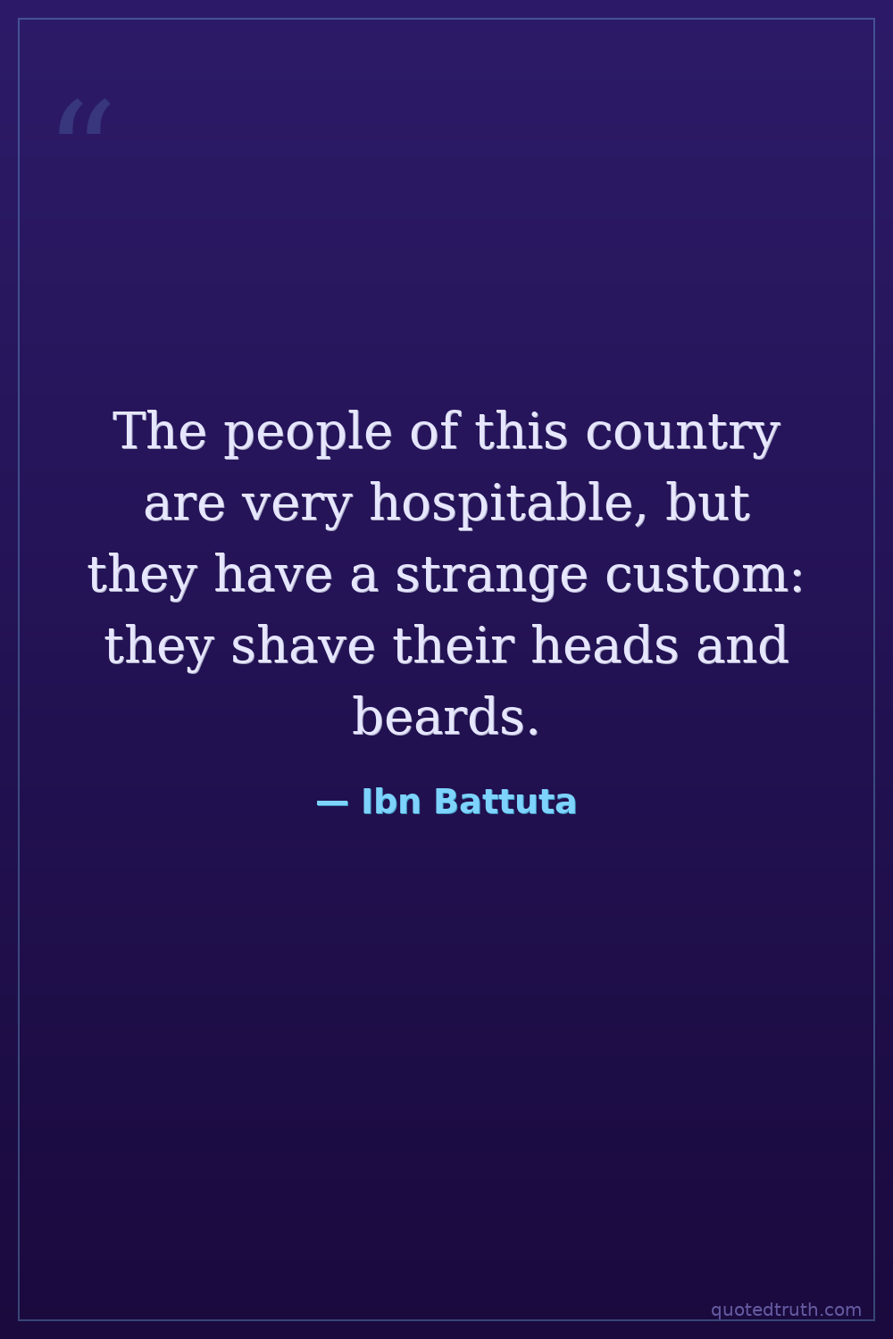 The people of this country are very hospitable, but they have a strange custom: they shave their heads and beards.