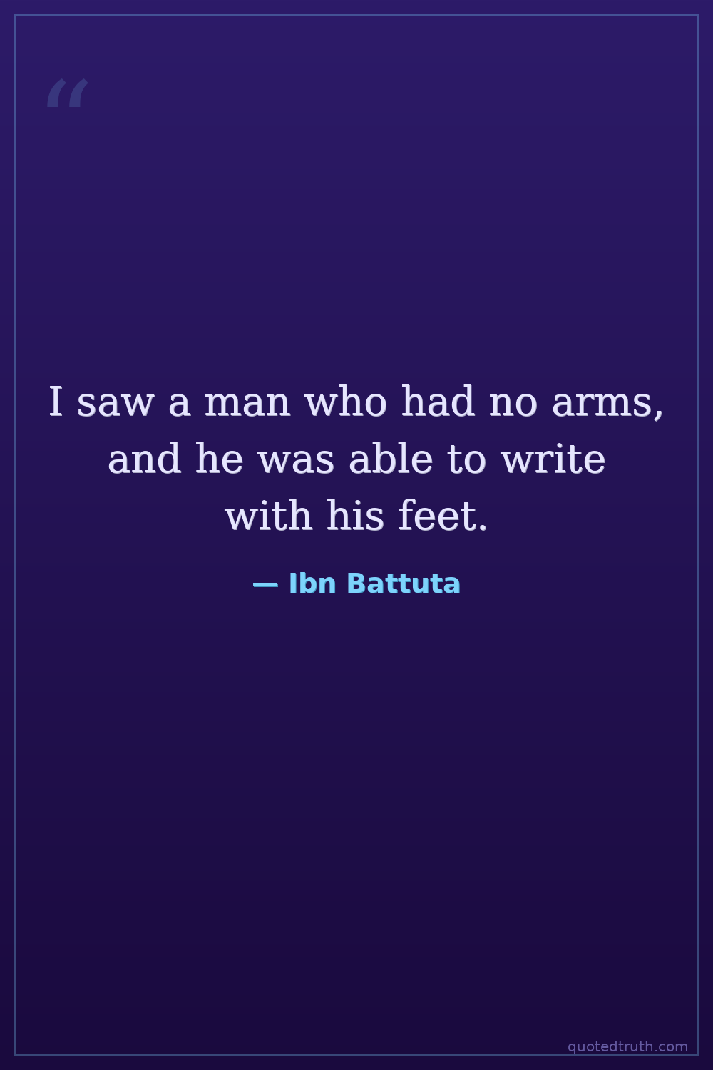 I saw a man who had no arms, and he was able to write with his feet.
