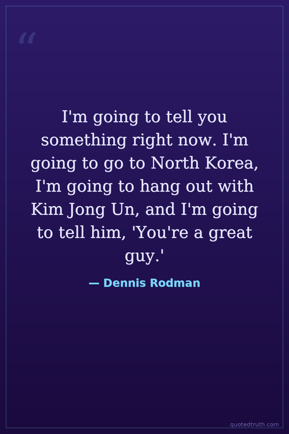 I'm going to tell you something right now. I'm going to go to North Korea, I'm going to hang out with Kim Jong Un, and I'm going to tell him, 'You're a great guy.'