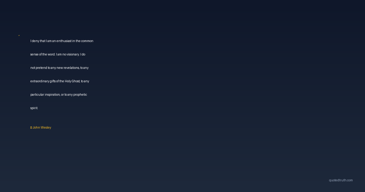 I deny that I am an enthusiast in the common sense of the word. I am no visionary. I do not pretend to any new revelations, to any extraordinary gifts of the Holy Ghost, to any particular inspiration, or to any prophetic spirit.