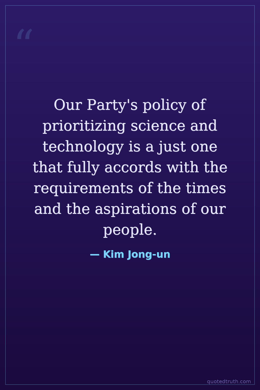 Our Party's policy of prioritizing science and technology is a just one that fully accords with the requirements of the times and the aspirations of our people.