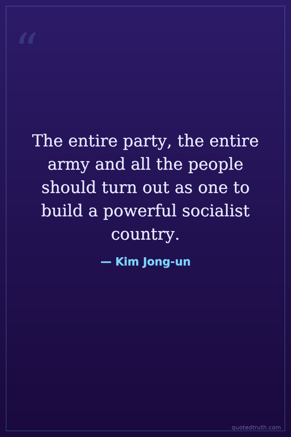 The entire party, the entire army and all the people should turn out as one to build a powerful socialist country.