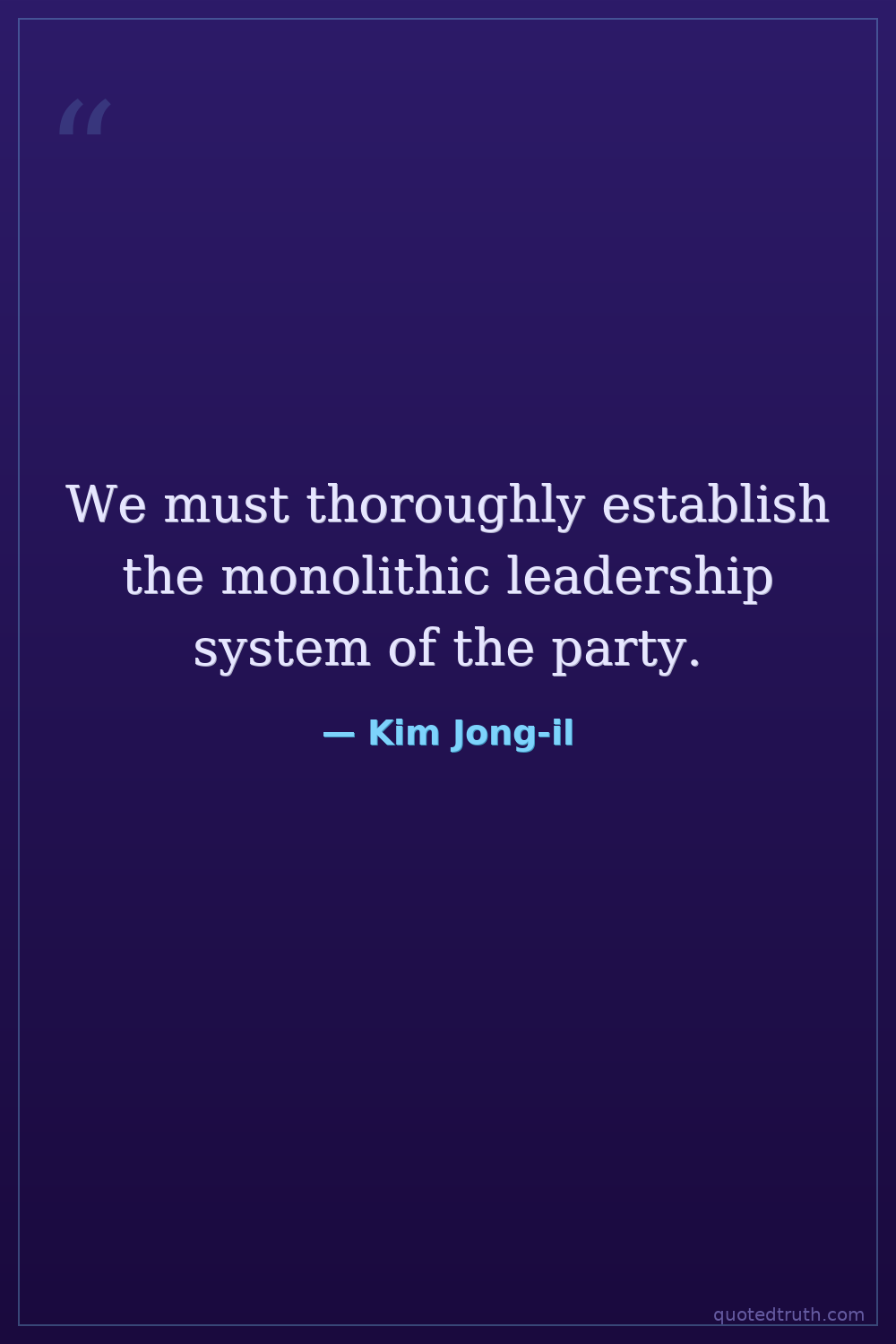We must thoroughly establish the monolithic leadership system of the party.