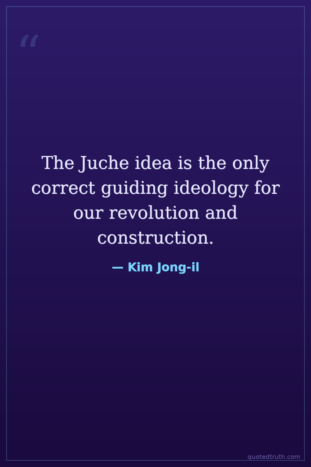 The Juche idea is the only correct guiding ideology for our revolution and construction.