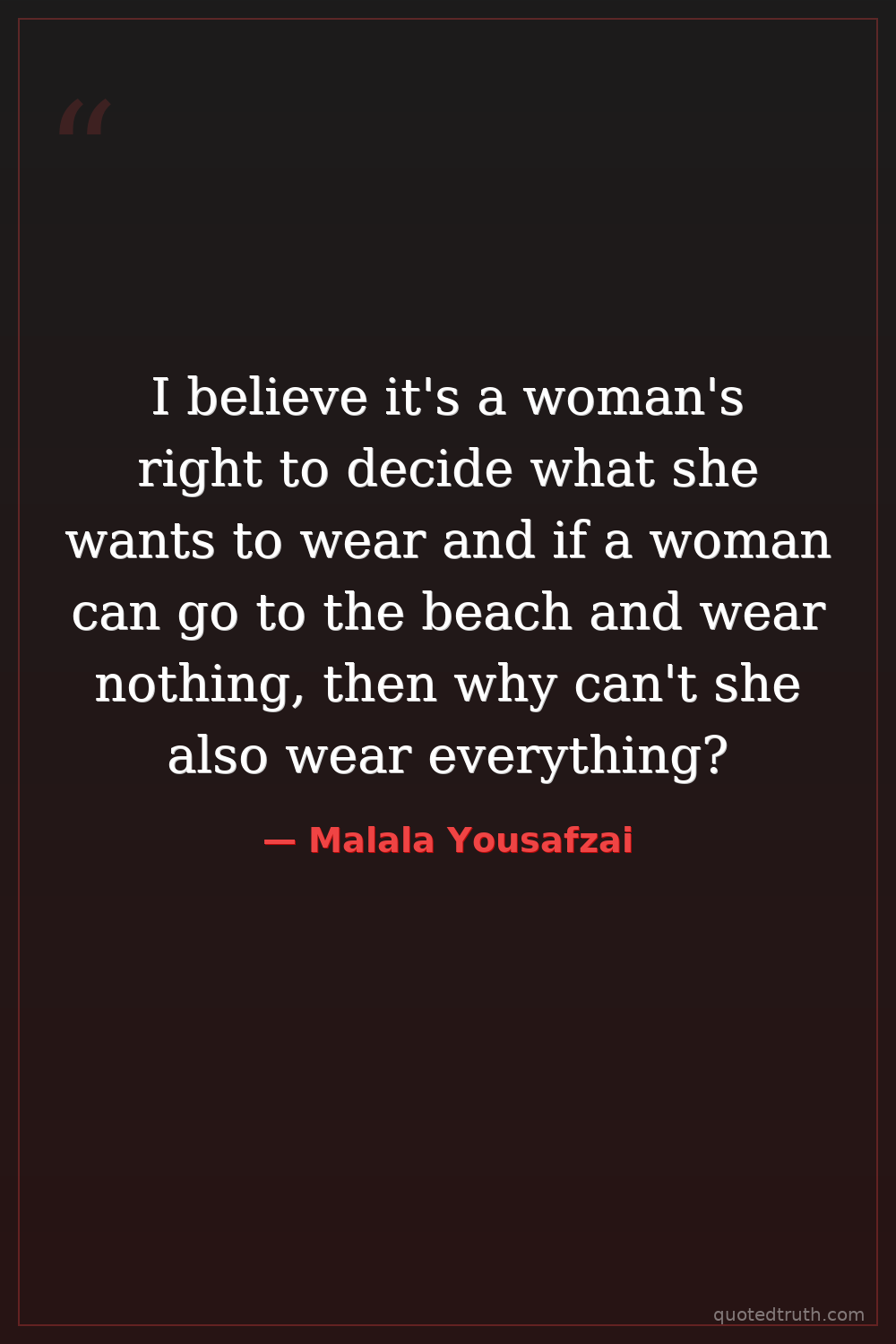 I believe it's a woman's right to decide what she wants to wear and if a woman can go to the beach and wear nothing, then why can't she also wear everything?