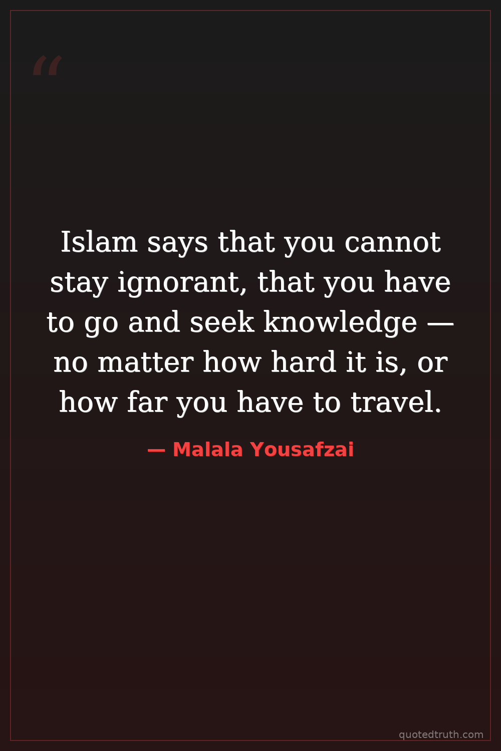 Islam says that you cannot stay ignorant, that you have to go and seek knowledge — no matter how hard it is, or how far you have to travel.