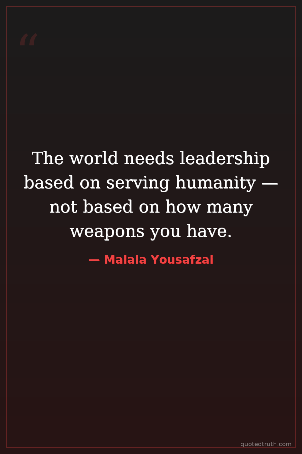 The world needs leadership based on serving humanity — not based on how many weapons you have.