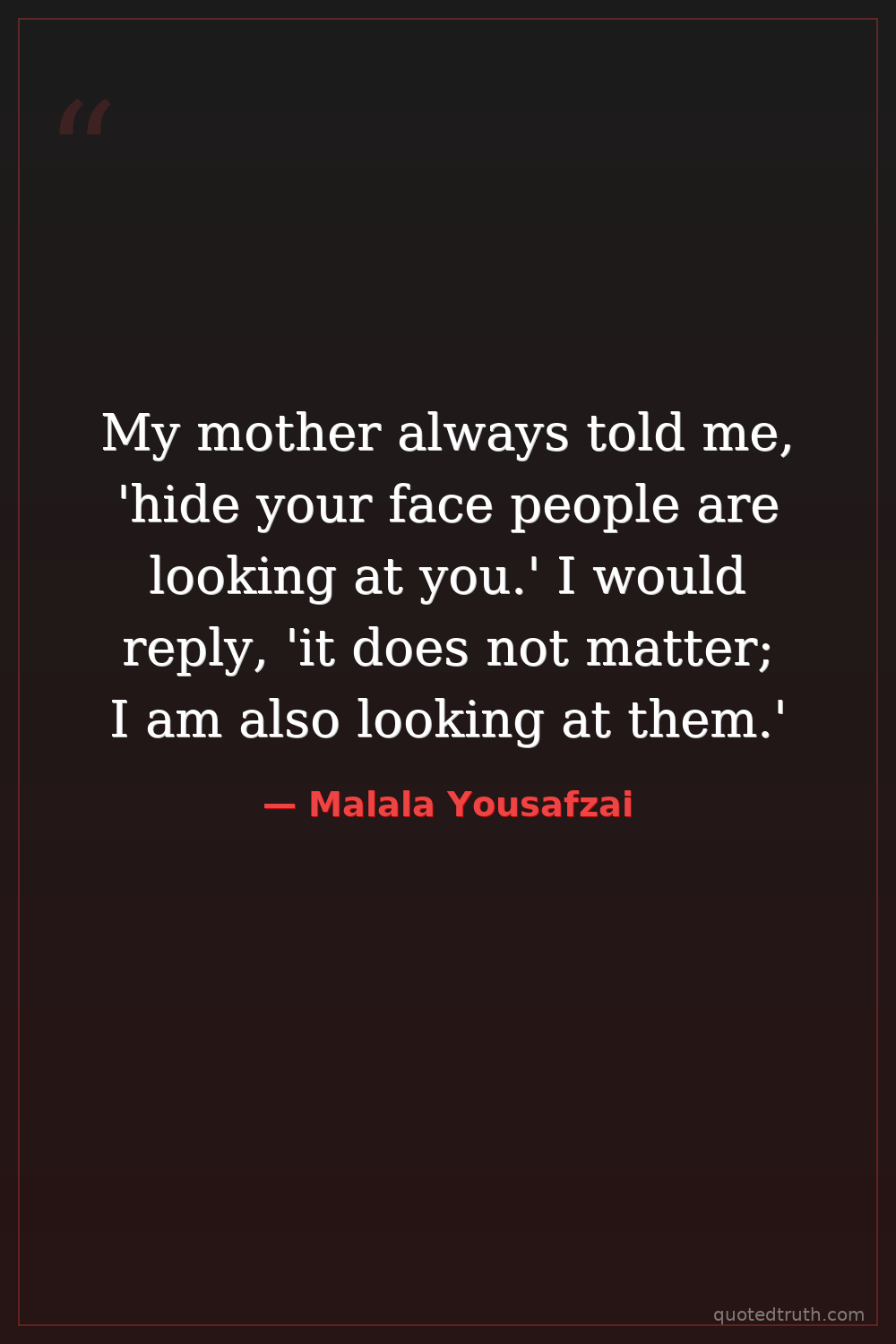My mother always told me, 'hide your face people are looking at you.' I would reply, 'it does not matter; I am also looking at them.'