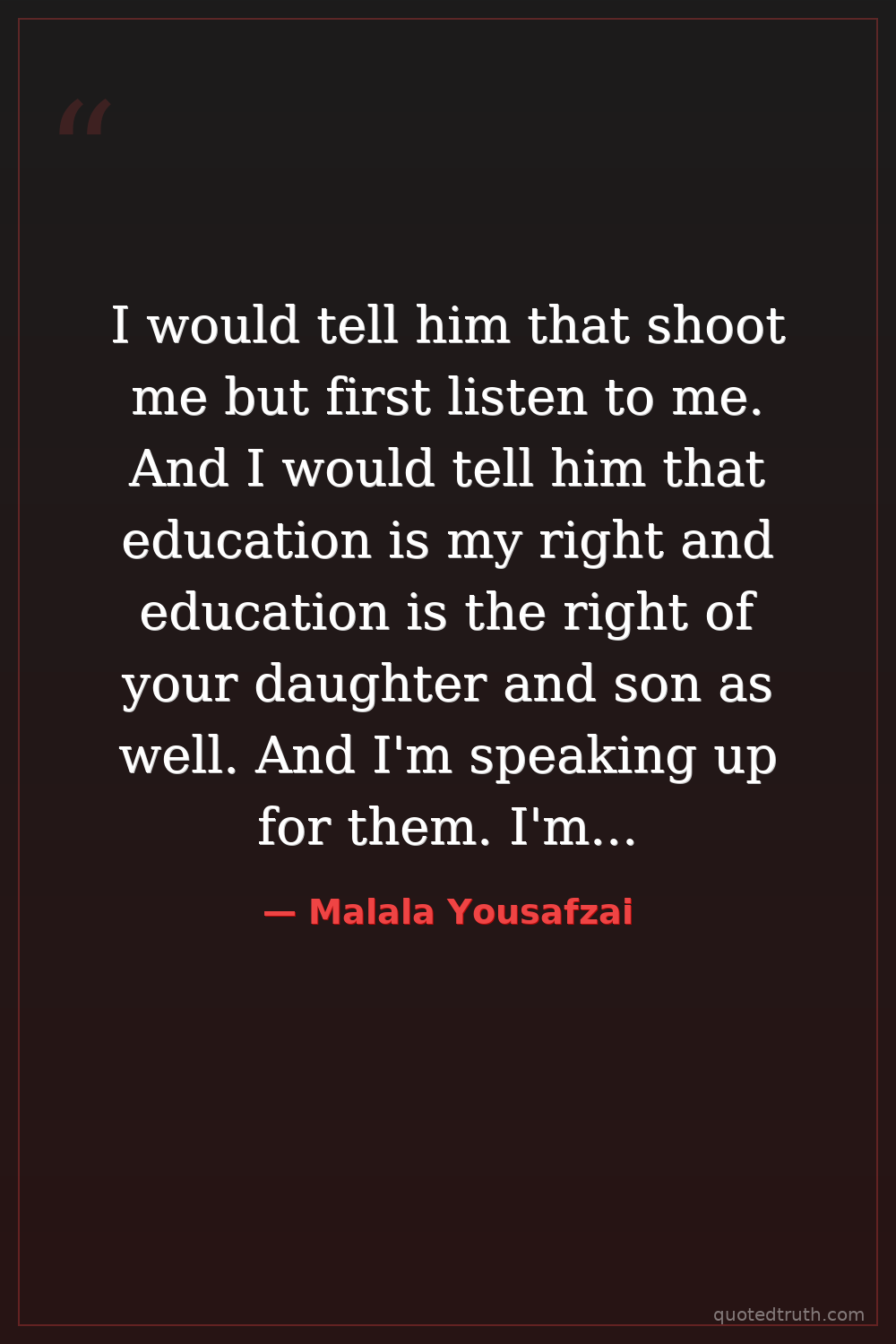 I would tell him that shoot me but first listen to me. And I would tell him that education is my right and education is the right of your daughter and son as well. And I'm speaking up for them. I'm speaking up for peace.
