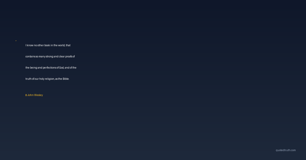 I know no other book in the world, that contains so many strong and clear proofs of the being and perfections of God, and of the truth of our holy religion, as the Bible.