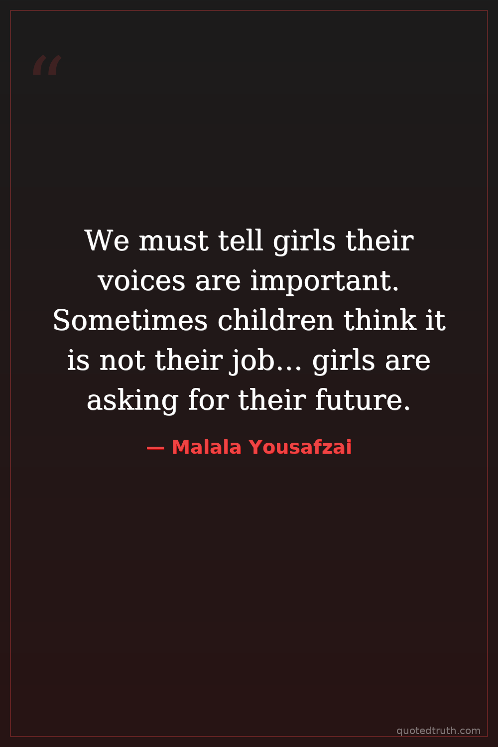 We must tell girls their voices are important. Sometimes children think it is not their job… girls are asking for their future.