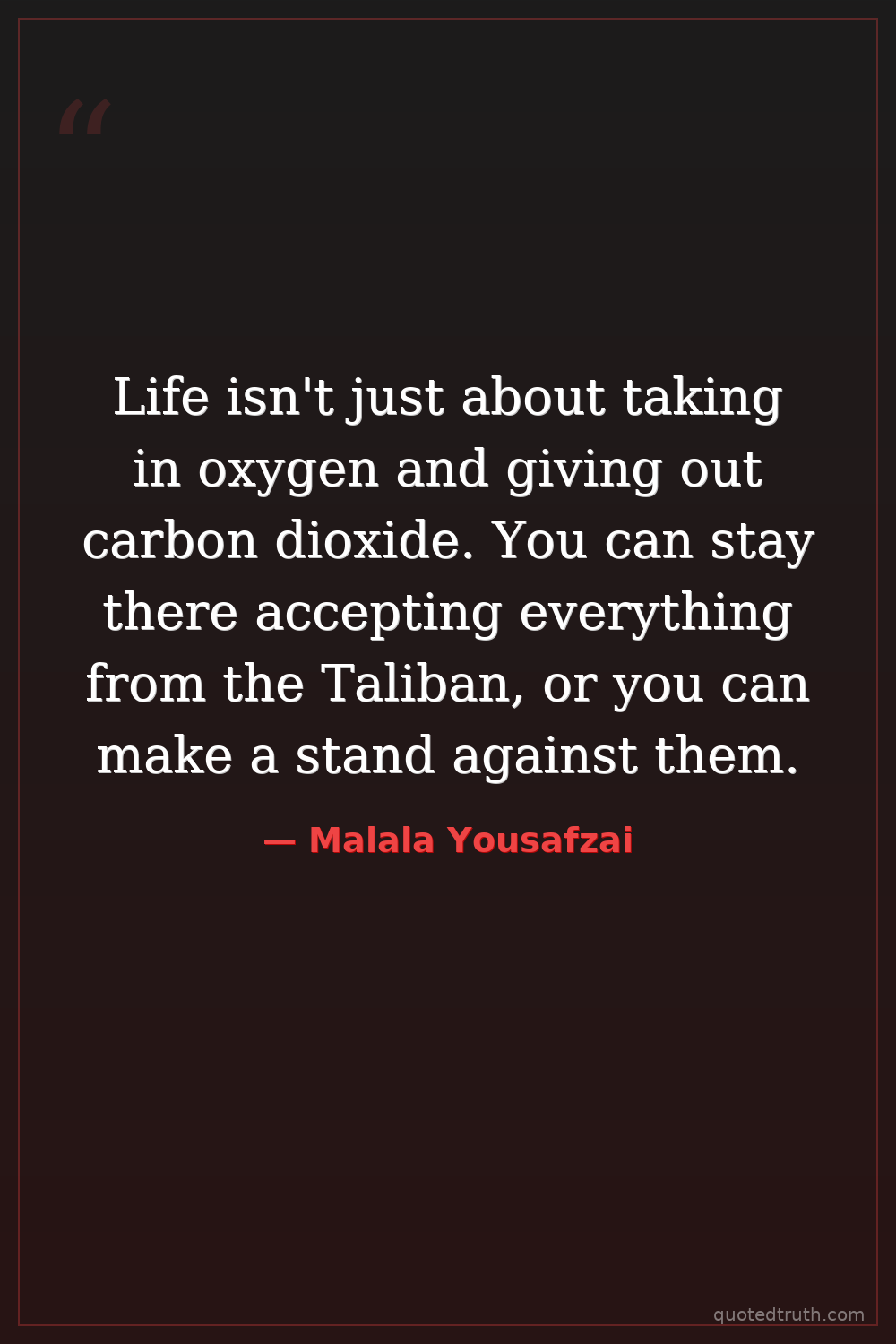 Life isn't just about taking in oxygen and giving out carbon dioxide. You can stay there accepting everything from the Taliban, or you can make a stand against them.